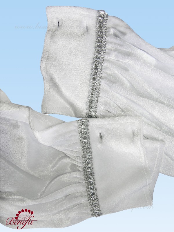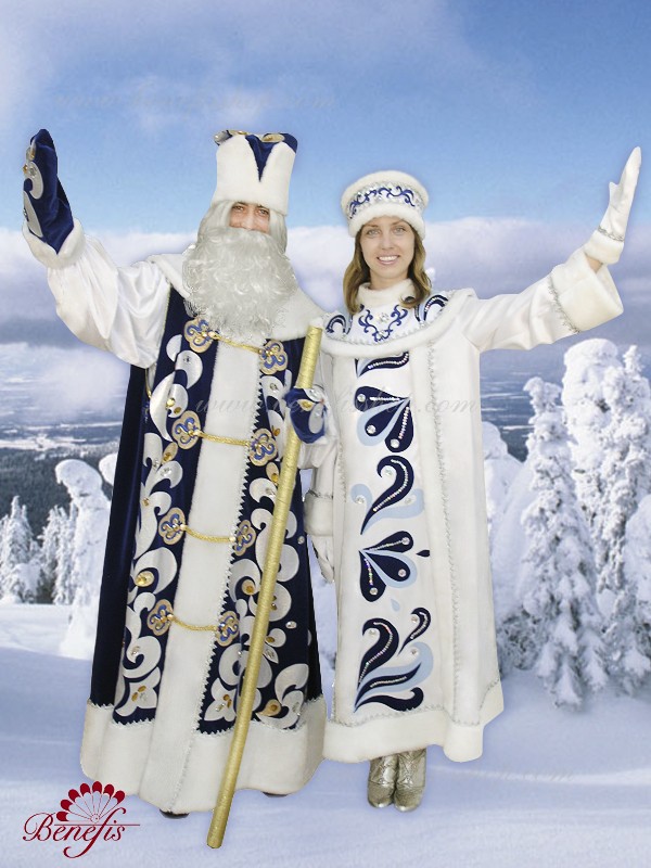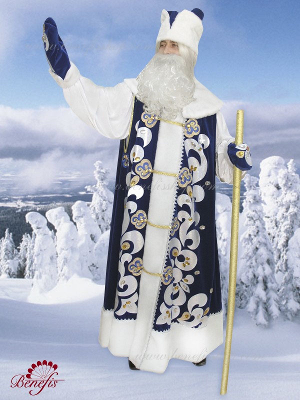 Roba, cămaşa şi caciula sînt confecţionate din ţesătură densă şi decorate cu blană artificială, aplicaţii şi cristale. Cămaşa din ţesătură fină este decorată cu o panglică argintie. Roba fără mîneci se îmbracă deasupra cămaşei şi se încheie cu nasturi. Sacul este confecţionat din aceiaşi ţesătură densă ca şi costumul.