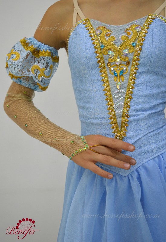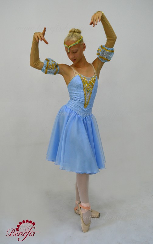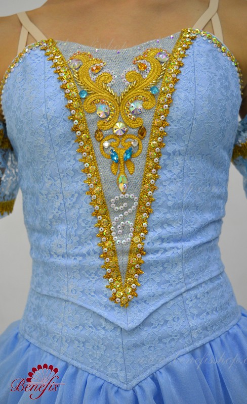 Costumul pentru scena balet este realizat pe baza corsetului T 0013 cu fusta 2 straturi si cu chilotii din supplex. Manșoanele sunt fabricate din guipure si decorate cu paiete. În formă de decor, sunt folosite aplicații, paiete, margele, bule și pietre .