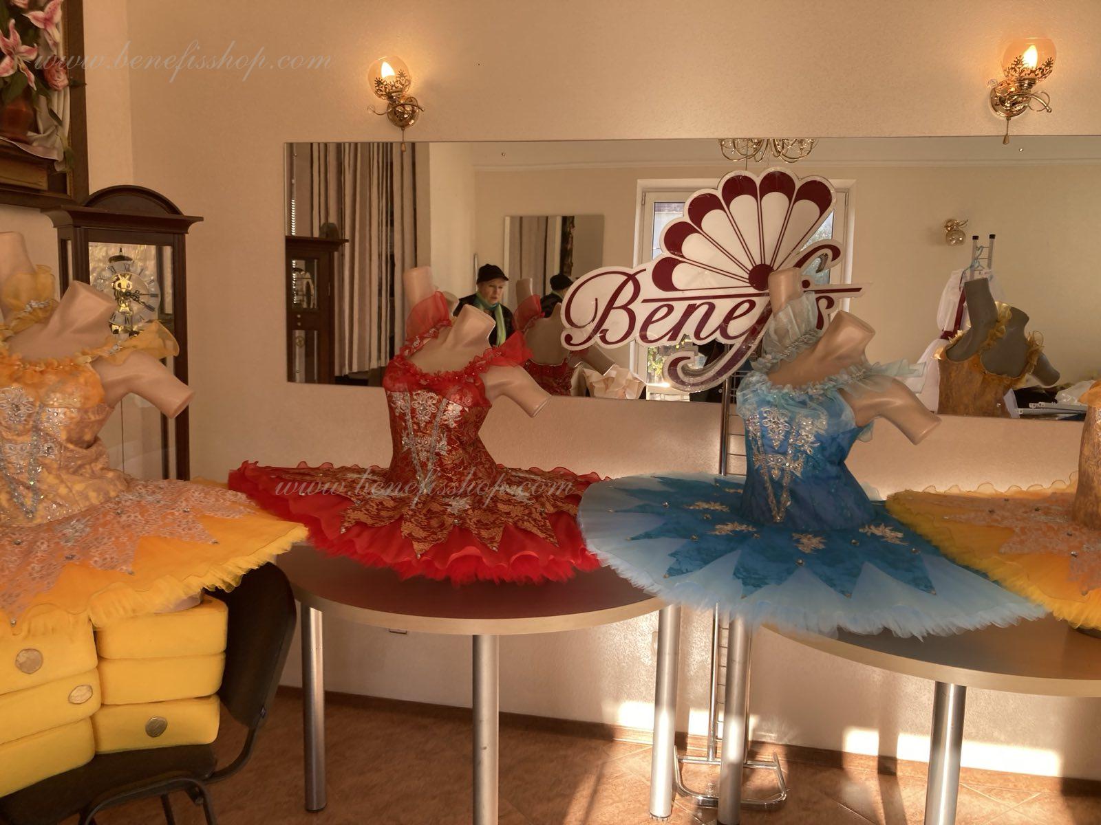 Acest costum profesional de balet este realizat pe baza unui tutu de bază profesional