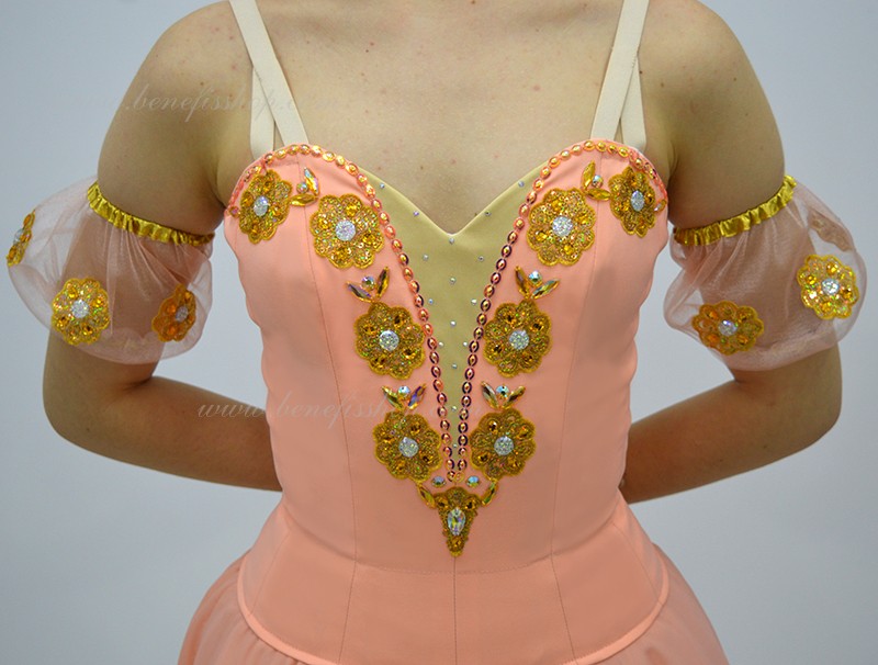 Fusta este formată din 2 straturi de tul moale, fusta superioară este din șifon.