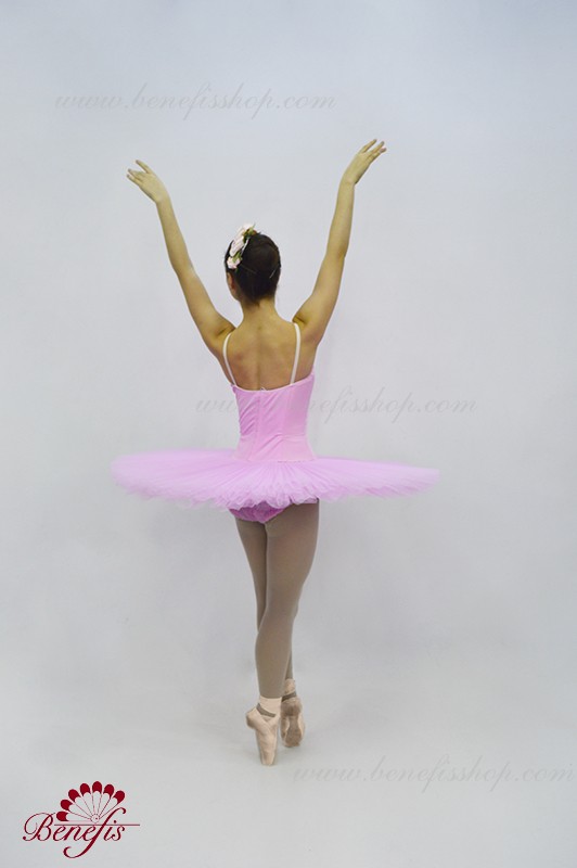 Costumul de scena este confectionat pe baza unui tricou supplex, cu decor usor in zona pieptului.Acest costum este realizat pe baza unui tricou si a unei fuste tutu cusute cu acesta. Fusta de balet este realizata din 6 straturi de tul rigid. Toate straturile tutului sunt așezate în pliuri, ca orice tutu profesional. Lungimea straturilor este diferita (in functie de marimea produsului), scade spre stratul de jos. În mijlocul straturilor este cusut un volan, unde este introdus un cerc de oțel.