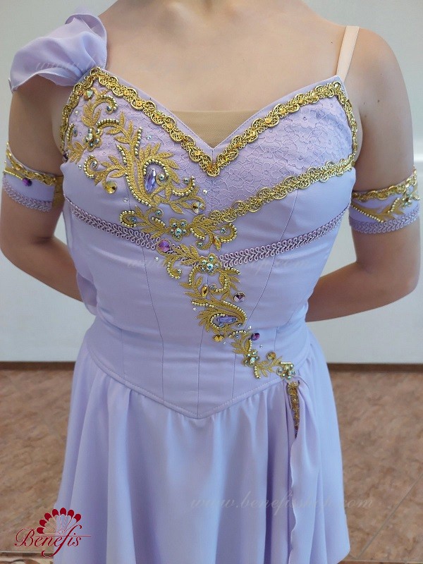 Detalii: costum, mansete. Corsetul este obișnuit cu reliefuri, cu vârful guipure. Fusta din sifon.