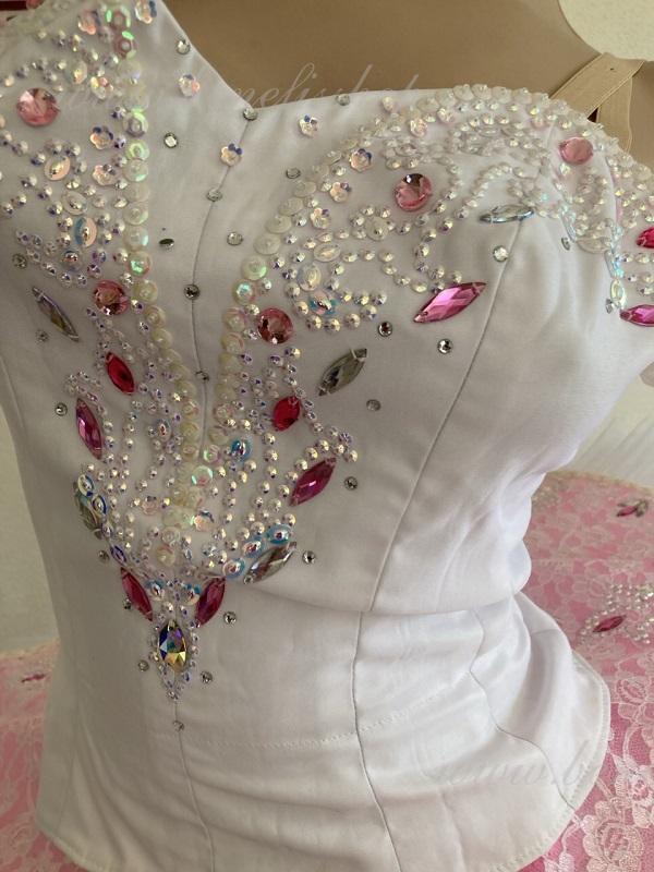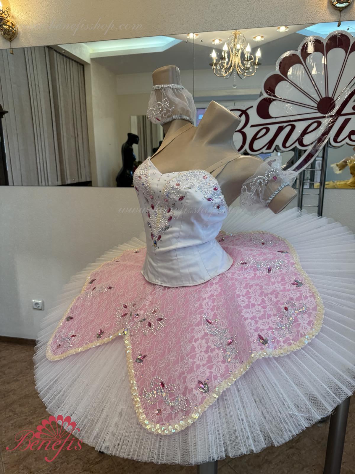 Costum de scena profesionist. Este confectionat in baza fustei de balet profesioniste #T0001B (vezi compartimentul „Fuste de balet de baza”).