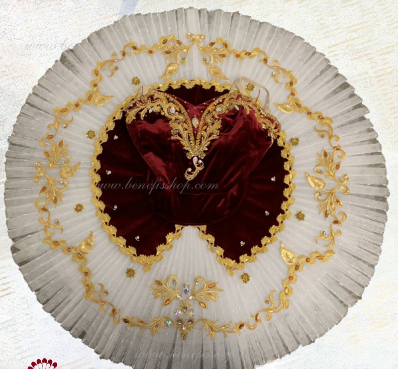 Costum de scena profesionist. Este confectionat in baza fustei de balet profesioniste #T0001B (vezi compartimentul „Fuste de balet de baza”).