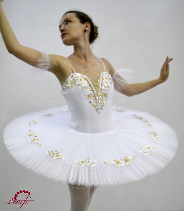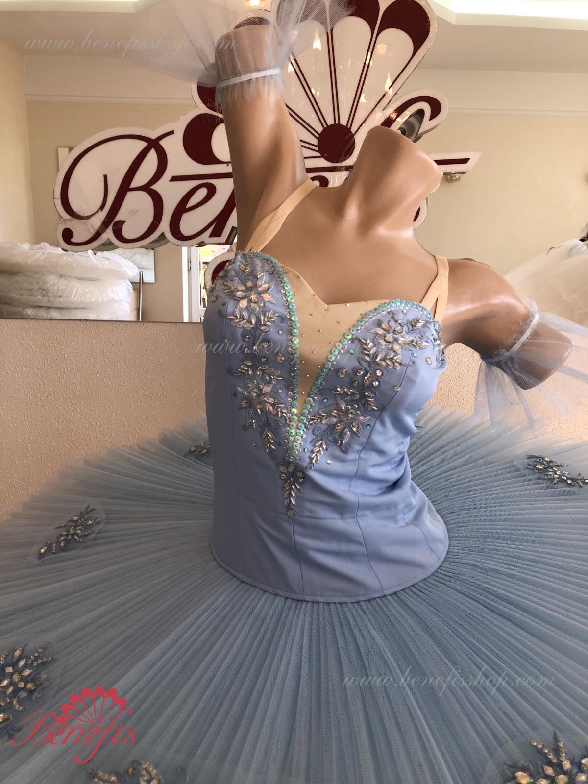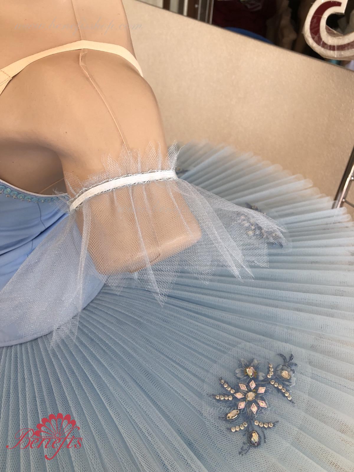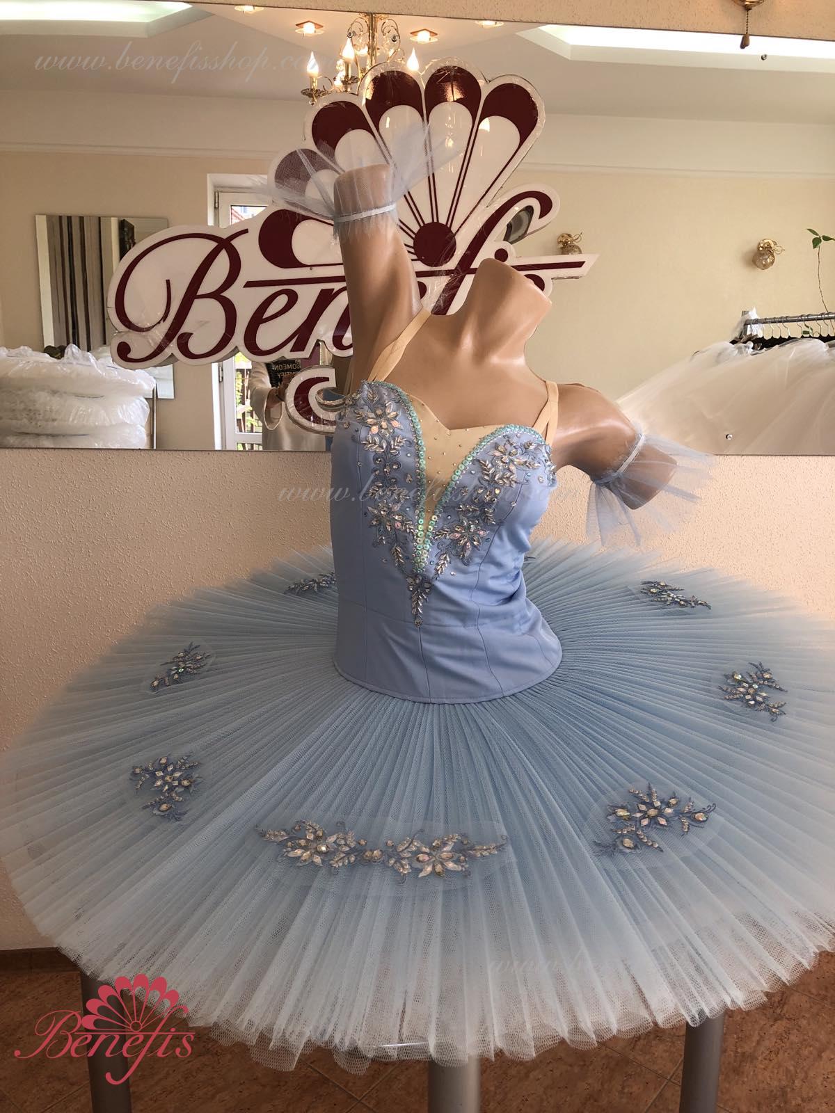 Costumul de scena este confectionat pe baza corsetului T0009 si a bazei T00013, cu maneci delicate. Ca decor folosit: Aplicații, paiete, pietre.