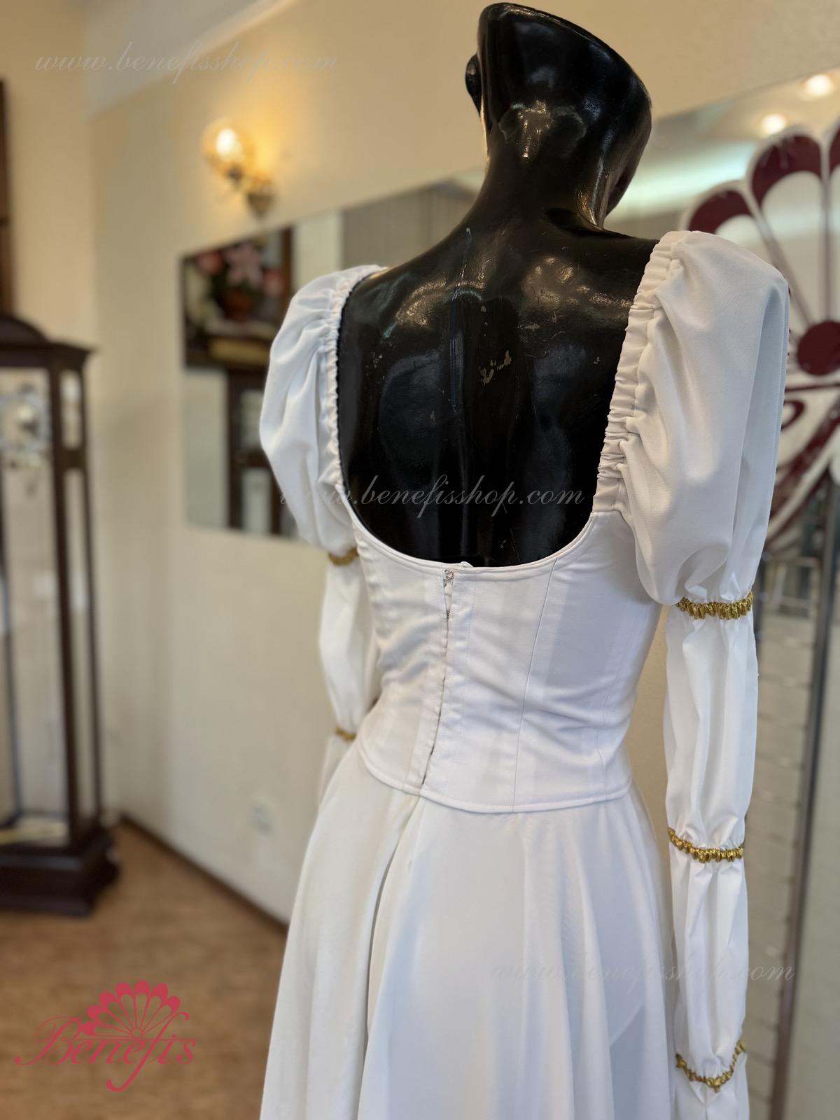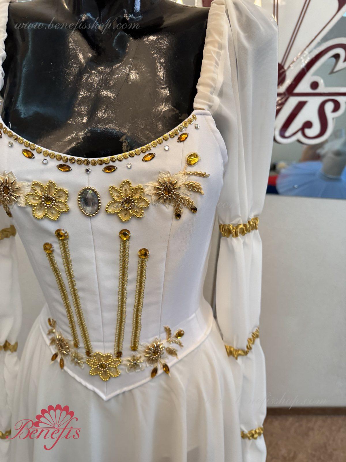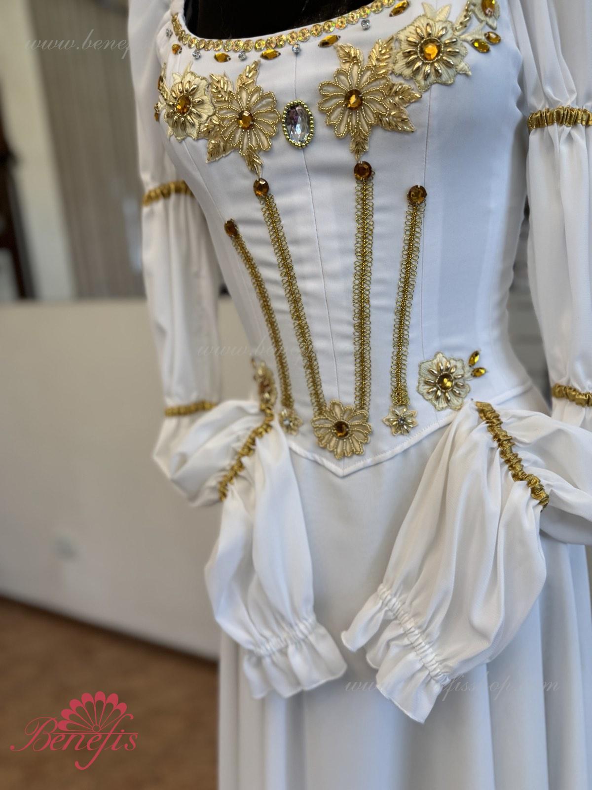 Acesta este un costum de scena profesional . Corsetul este realizat din tesatura densa semi-elastica si se incheie cu doua randuri de cârlige la spate. Pentru reglarea confortabilă a corsetului in zona pieptului, se utilizeaza snurul intern . Manecile lungi sunt făcute din țesătura delicata. Partea inferioară a produsului este realizată din două straturi de sifon.