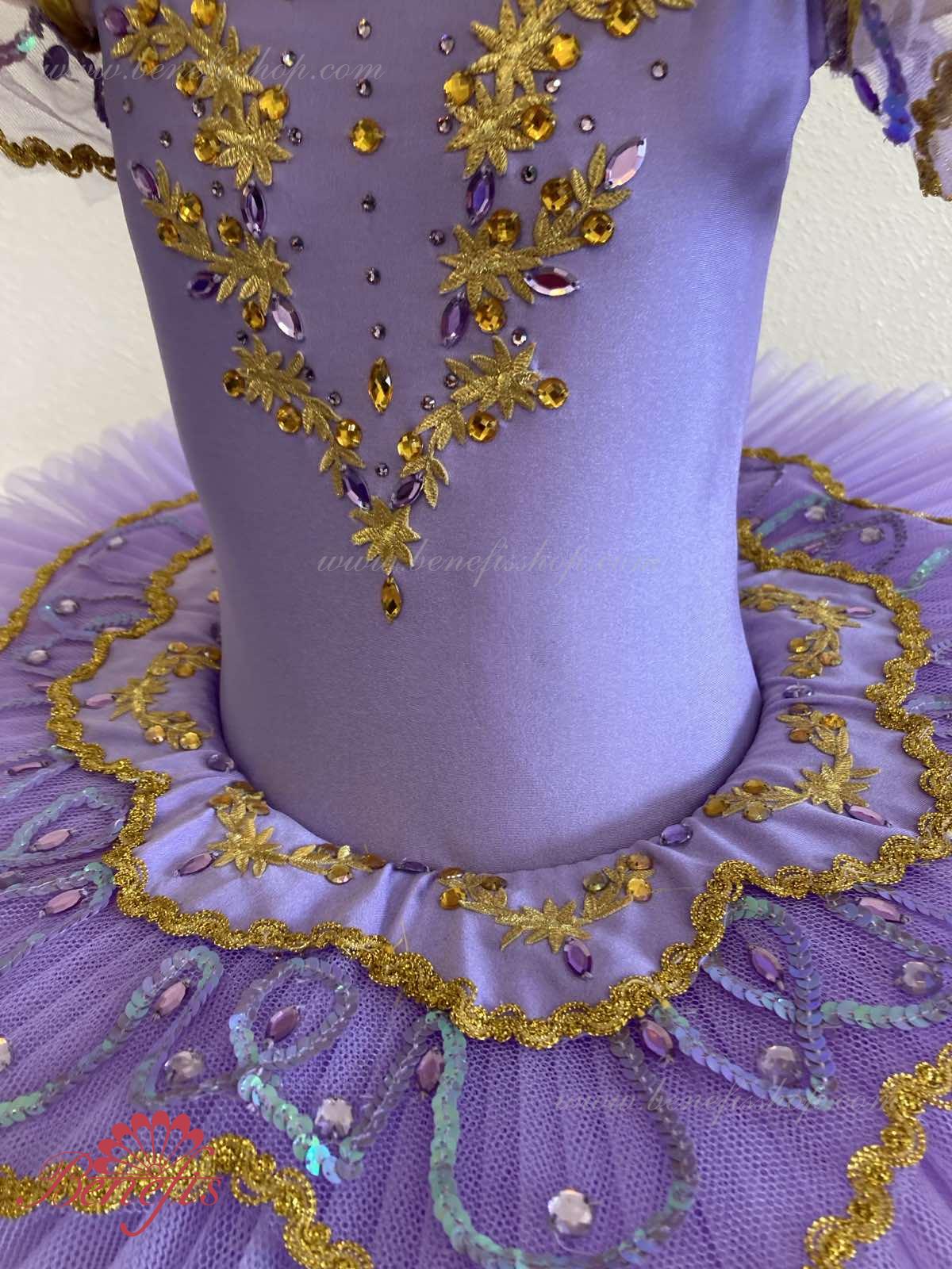 Acest costum de concert este indeplinit in baza unui tricou elastic si a fustei cu cercuri. Corsetul si stratul superior al fustei este decorat cu aplicatii aurii sau argintii, cristale de diferite marimi. Marginea stratului superior al fustei si minecute sunt impodobite cu panglica aurie sau argintie.