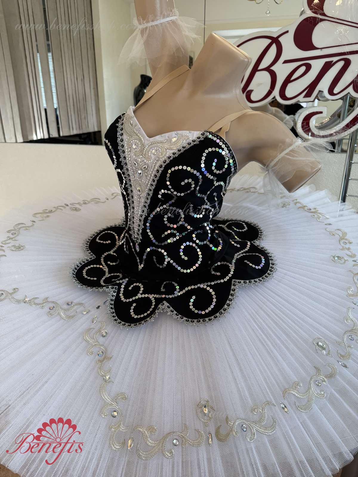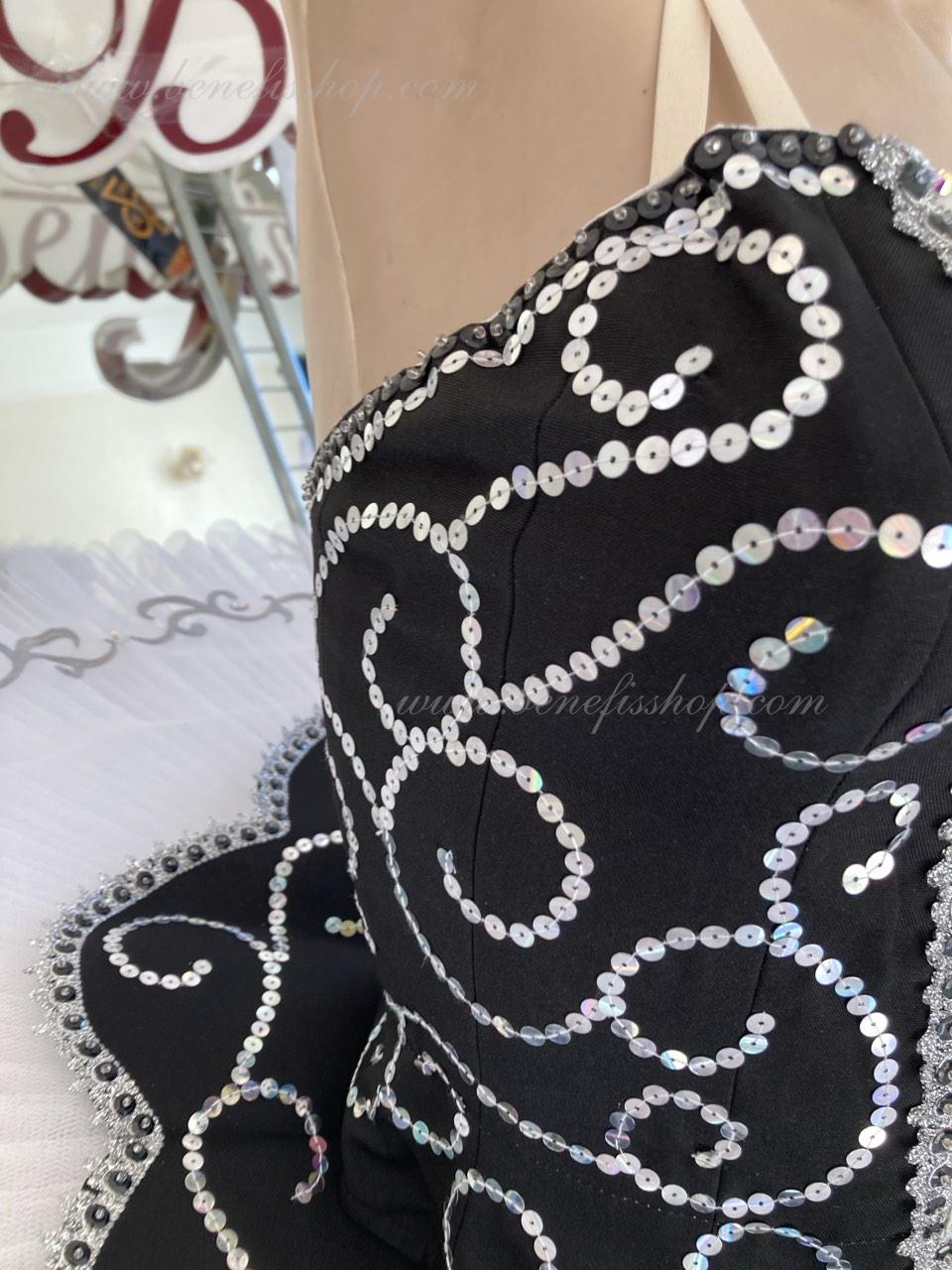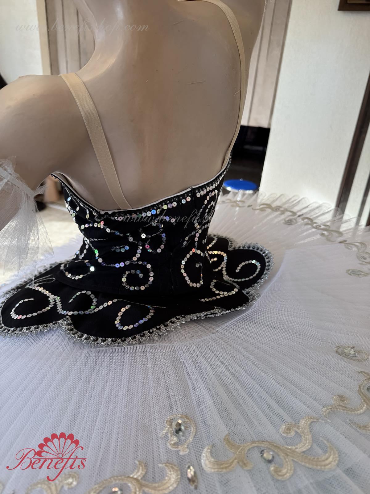 Costum profesional de balet este confectionat in stil strict clasic. Culorile contrastante ale costumului îi conferă o solemnitate specială.