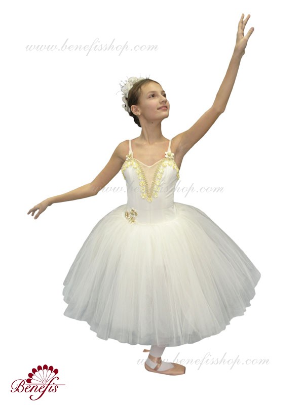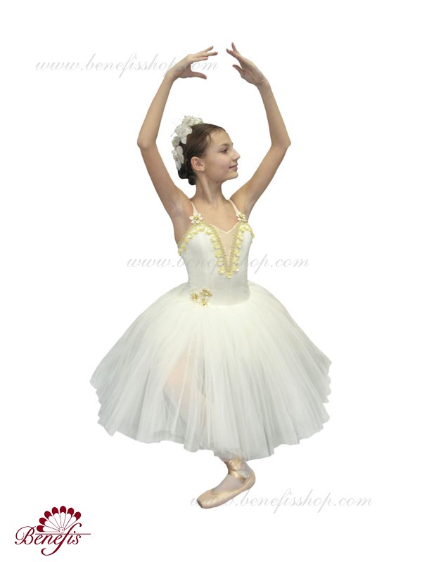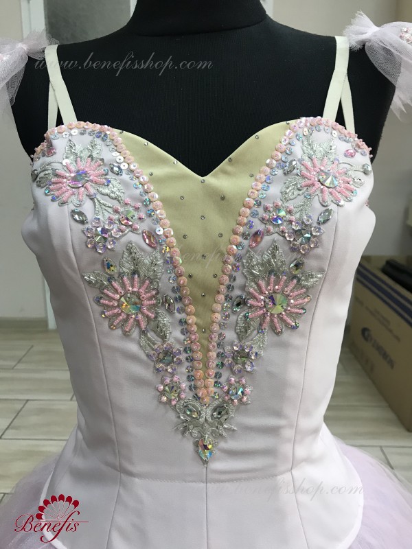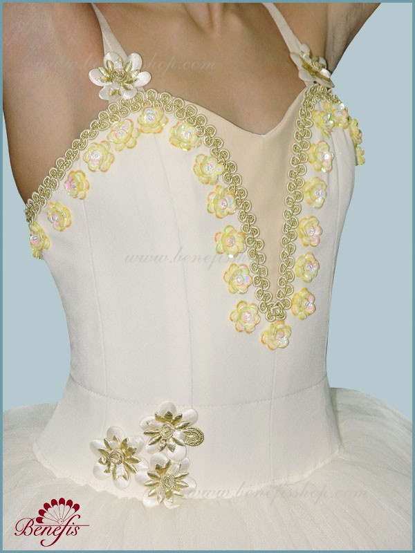 Decorul pe corset este efectuat cu ajutorul panglicei de culori gingase. El este la fel înfrumuseţat cu mărgele, particule strălucitoare, paiete si flori artificiale marunte ce accorda costumului un aspect deosebit.
