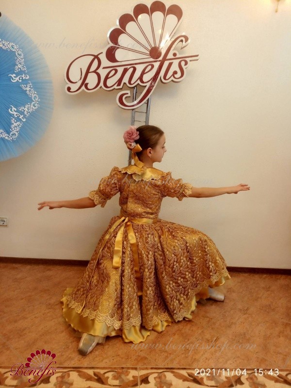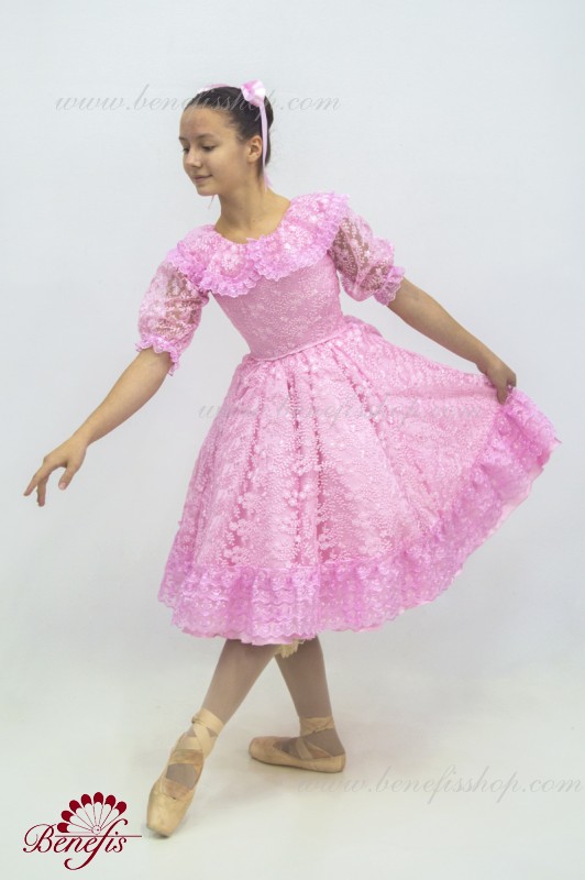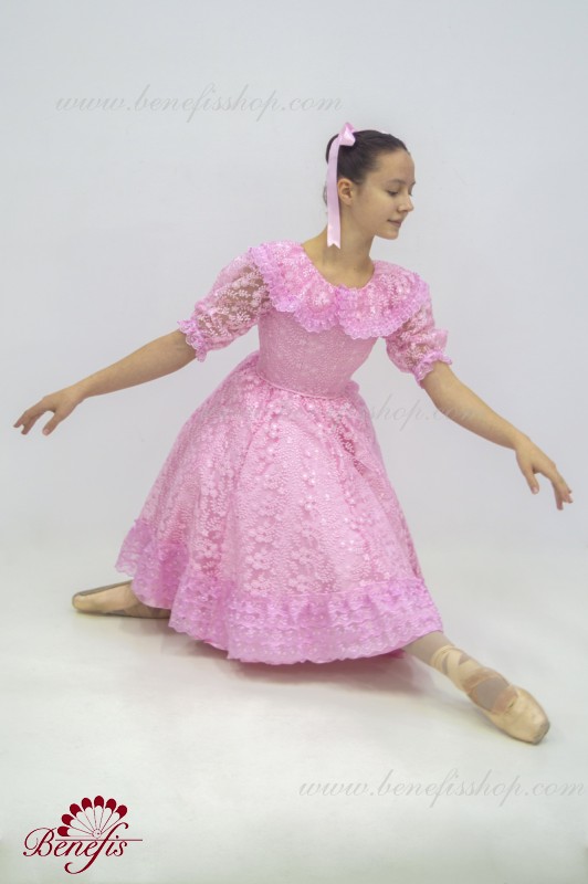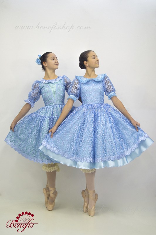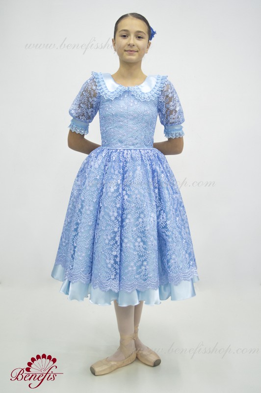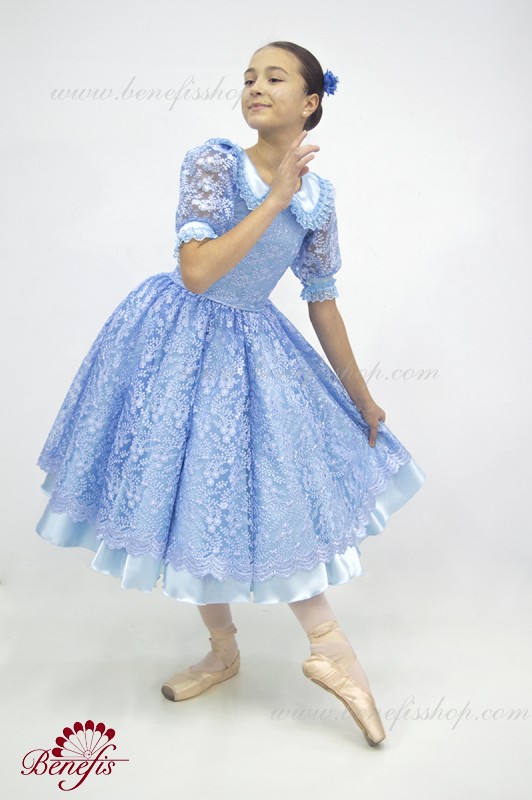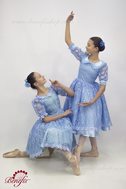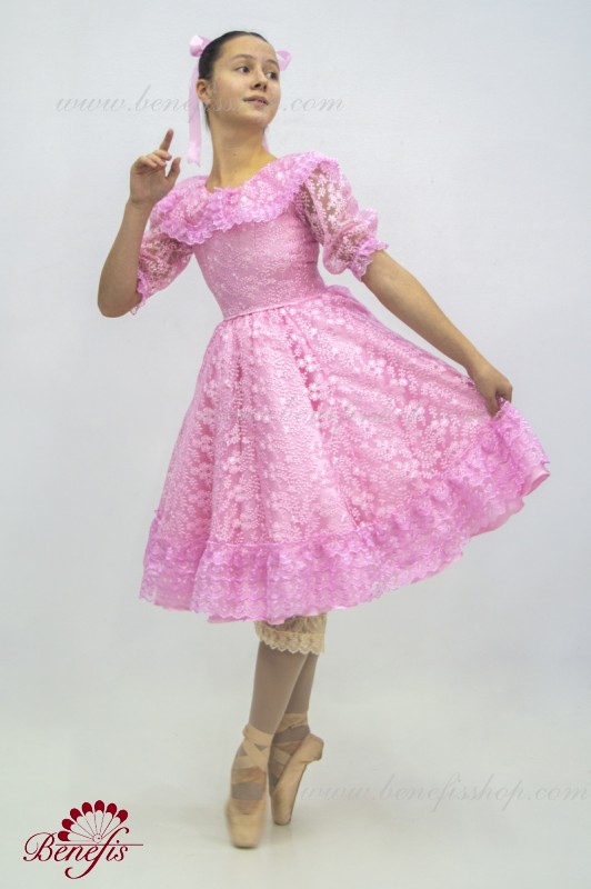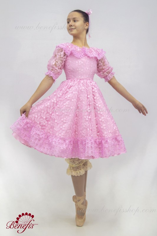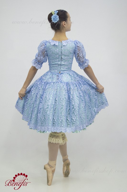Детали: платье, панталоны. Это профессиональный, сценический , балетный костюм. Изготовлен из набитой выбивной ткани- гипюра. Лиф застегивается сзади на два ряда крючков для удобного для удобного регулирования размера. Пышность юбке придают нежные слои фатина. В качестве декора используется кружево.