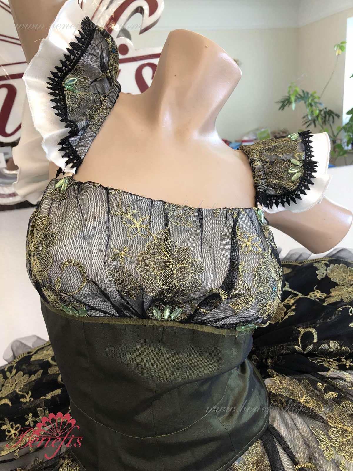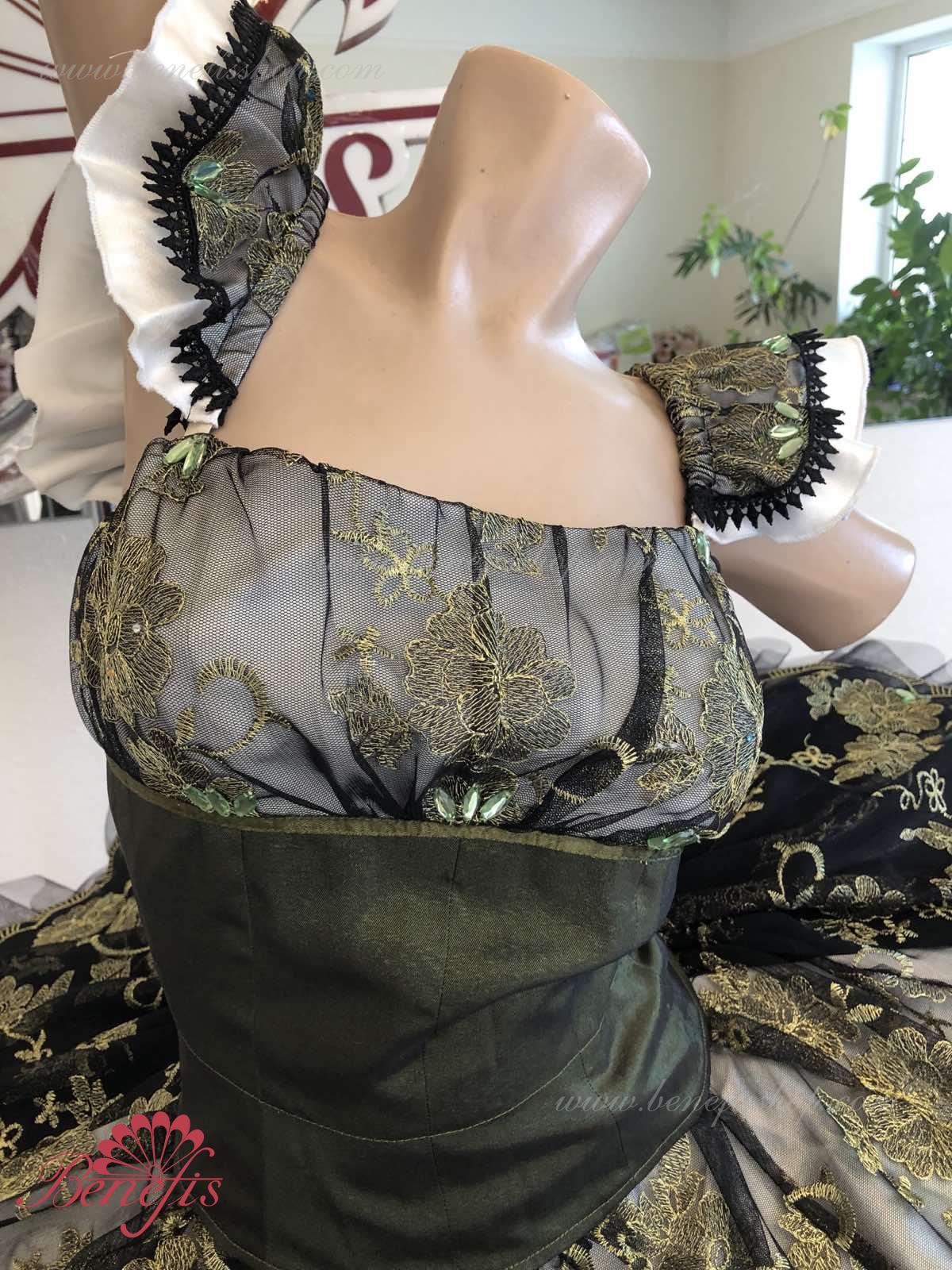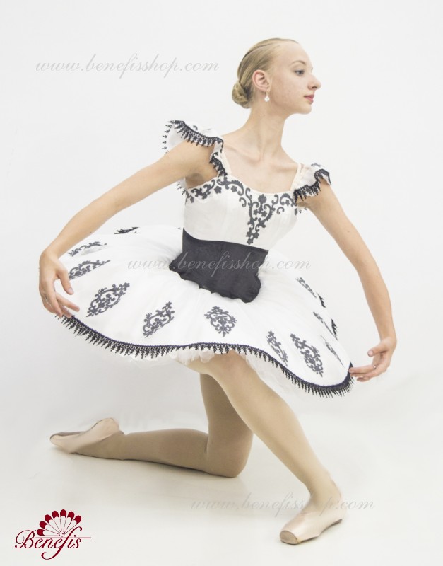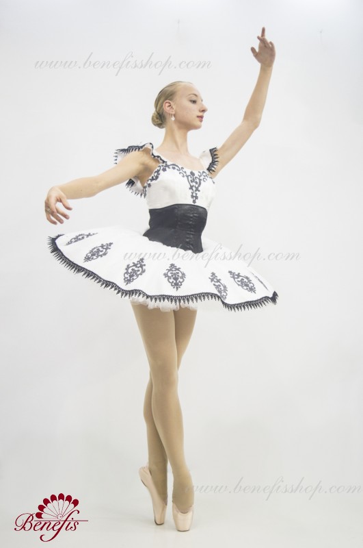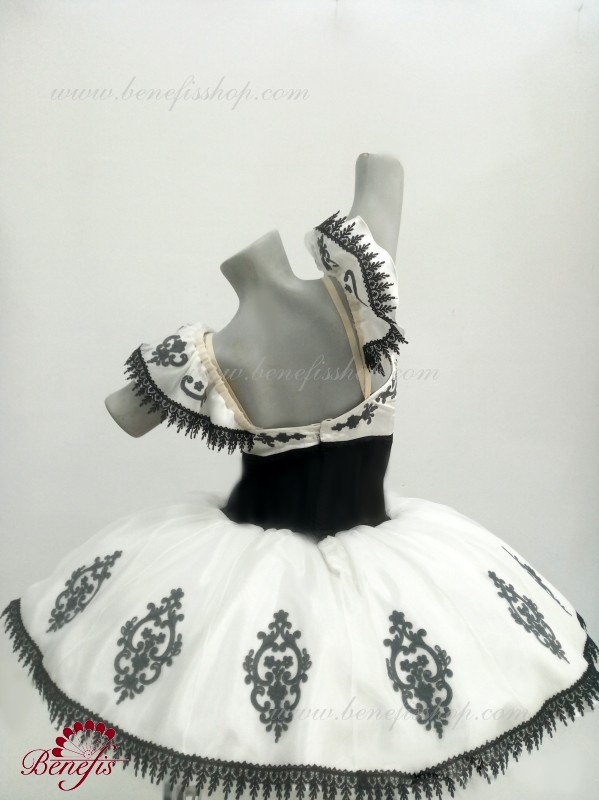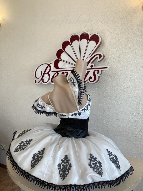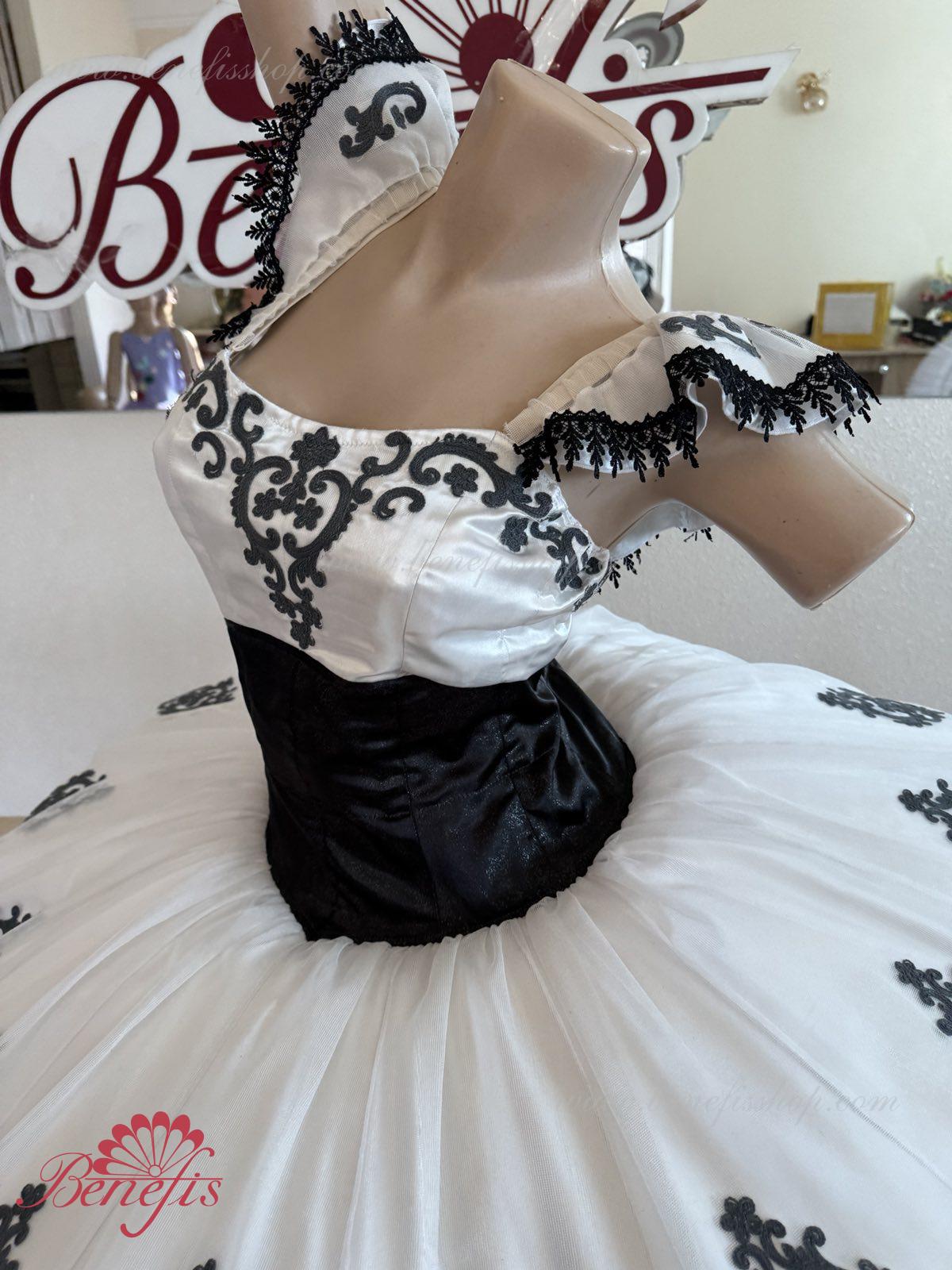 Детали: платье. Это профессиональный сценический балетный костюм. Лиф застегивается сзади на два ряда крючков. В области груди лиф застегивается внутренним шнуром в области груди. Базик основан на базовой модели T0001r из легкого мягкого и жесткого тюля. В качестве декора используются аппликации, кружевная тесьма.