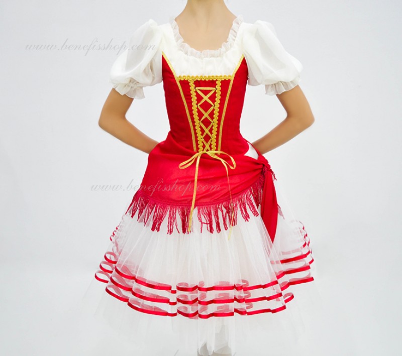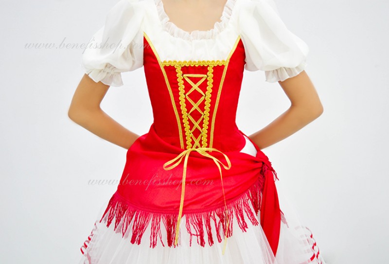 Детали: лиф, юбка, платок. Лиф выполнен из полу эластичной ткани, переходящий в рукава фонарики из шифона. Застежка сзади в 2 ряда крючков.Эта воздушная романтическая базовая пачка состоит из шести слоёв мягкого и жёсткого тюля, выполненных из множества клиньев. Все слои посажены на трусики из тюля. Трусики соединены с кокеткой (7см) из тюля, прикреплённой к эластичному поясу.