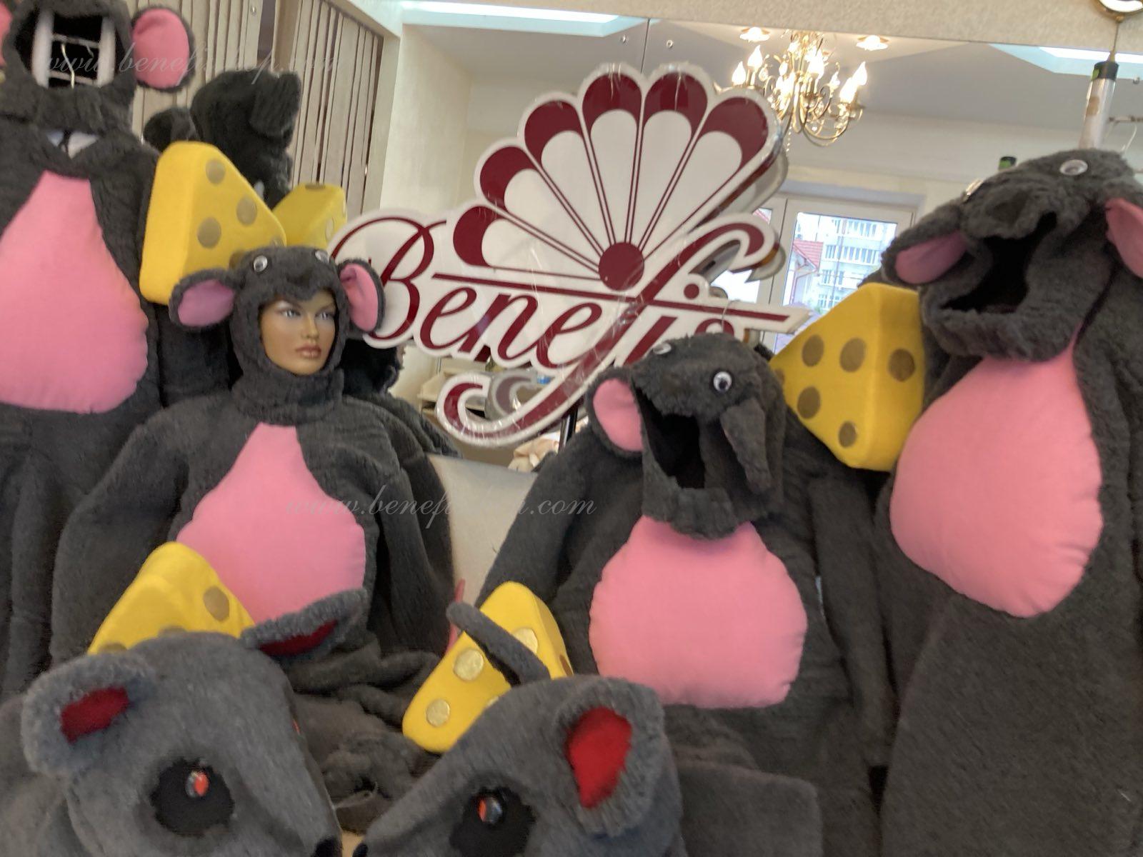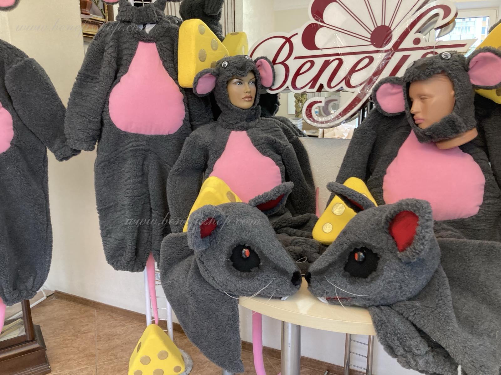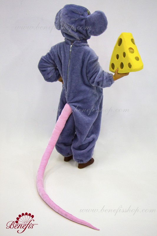 Детали: комбинезон, шапка, сыр. Комбинезон из меха, сзади молния. В пузике наполнитель. Шапка отдельно. Сыр из паралона