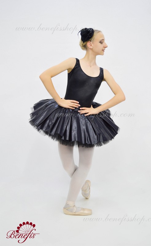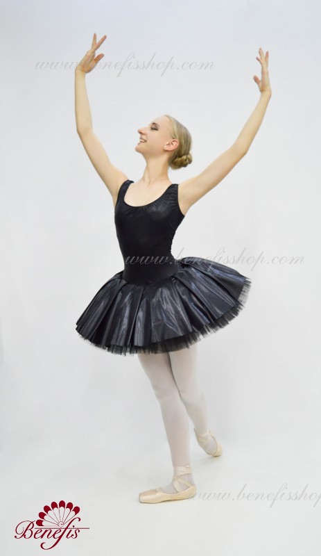 Детали: купальник, юбка, покрышка. Купальник может быть выполнен из ткани бифлекс (100 % лайкры) или из ткани хлопок – стрейч ( 85 % - хлопок, 15 % - лайкра),с подкладкой+ отрезные трусы. Юбка изготовлена из 2 слоёв мягкого и 3 слоёв жёсткого тюля разной длины. За счёт особой технологии изготовления, пачка сохраняет пышность, волнистые очертания.