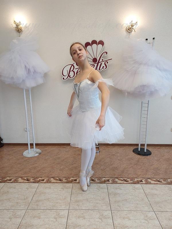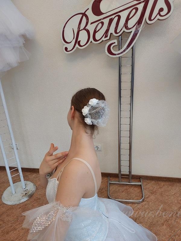Детали: костюм, рукава. Профессиональный сценический костюм выполнен на основе лифа T0009,без мысика дублированный сеткой. Лиф застегивается на крючки в два ряда для удобного регулирования, внутренний шнур служит для затягивания лифа в области груди. Юбка выполнена из 4-х воланов, трусы из бифлекса.