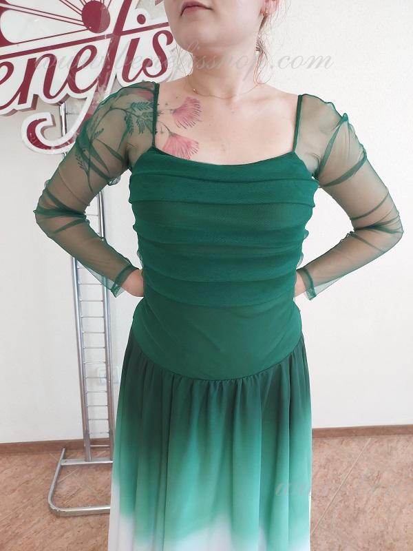 Детали: платье. Купальник выполнен из бифлекса, рукава сетка, юбка соединена с купальников 2 слоя шифона.