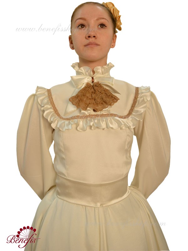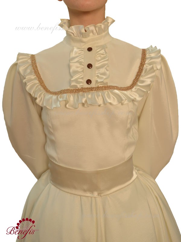 На передней части лифа используется жабо с декоративным съёмным бантом.