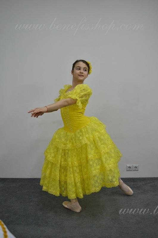 Костюм вышит аппликациями и блёстками.