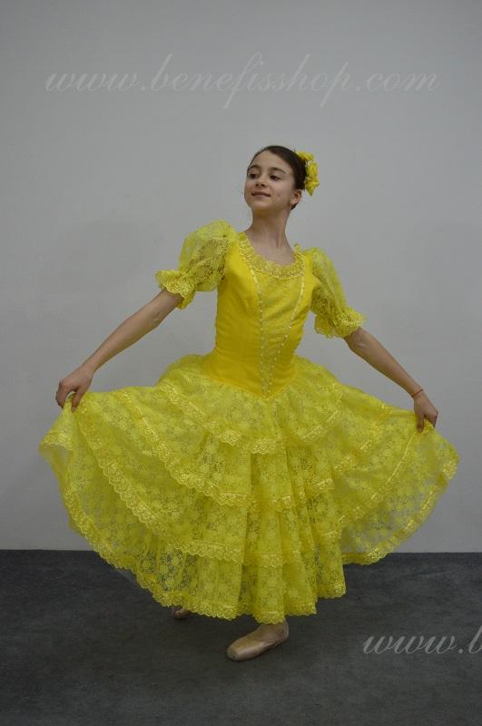 лифа, юбки в 3 слоя разной длины, края каждого слоя юбки оторочены светло-розовой тесьмой с кружевами.
