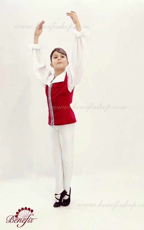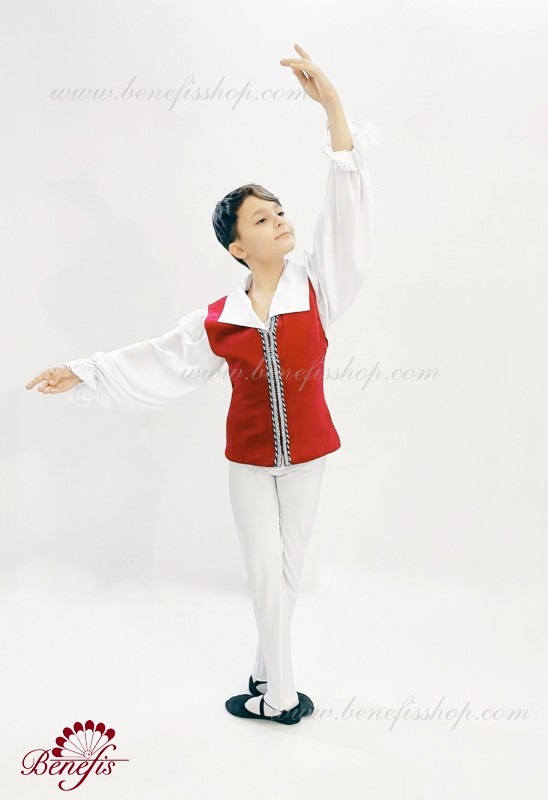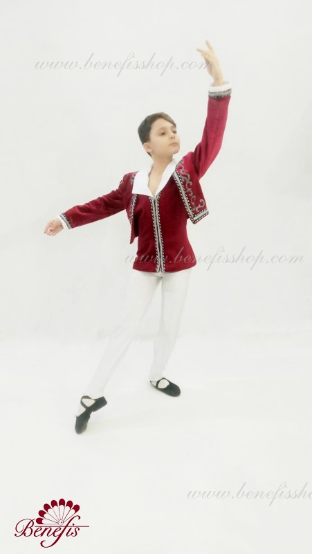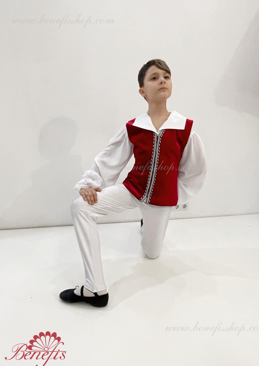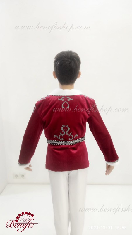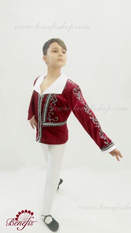 Детали: жилет, балеро, рубашка. Рубашка из мягкого шифона застёгивается на груди. Белый воротник выполнен из креп-шифона. Жилет выполнен из бархата. В качестве декора используются аппликации, тесьма.