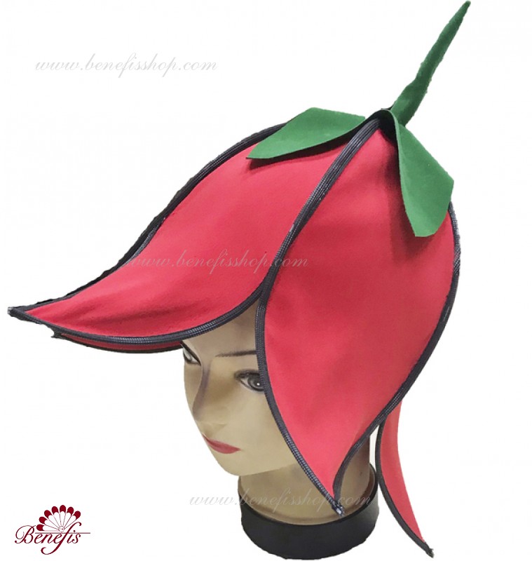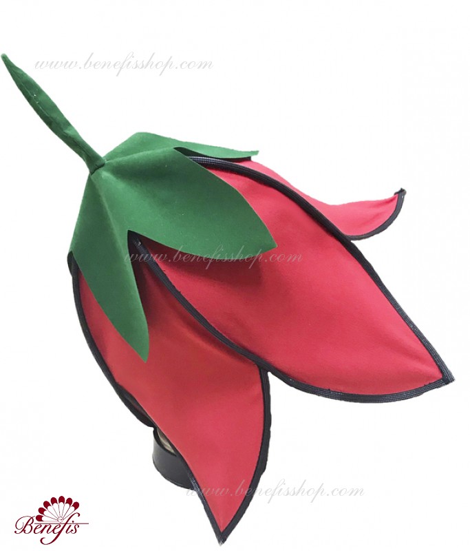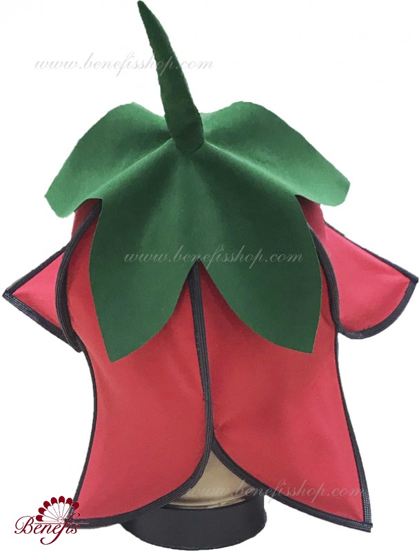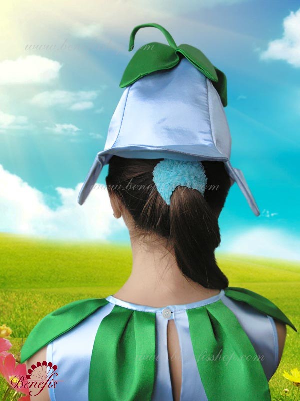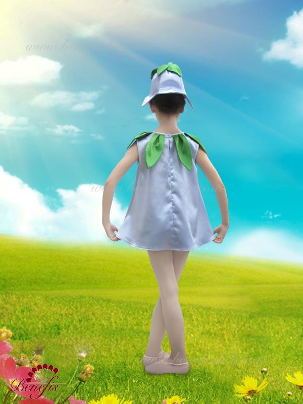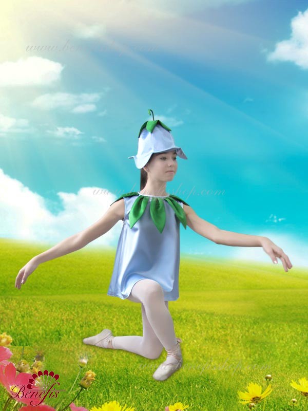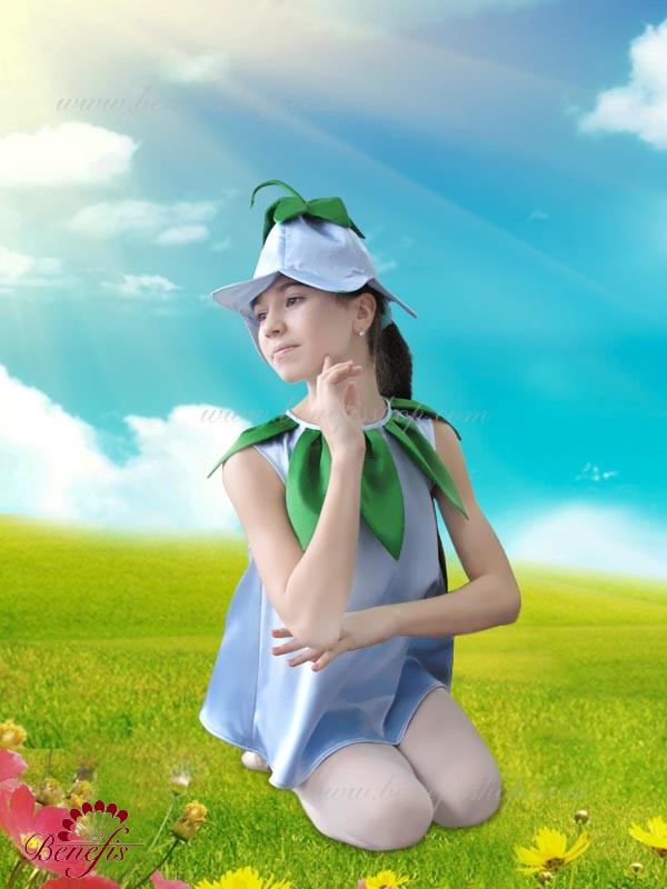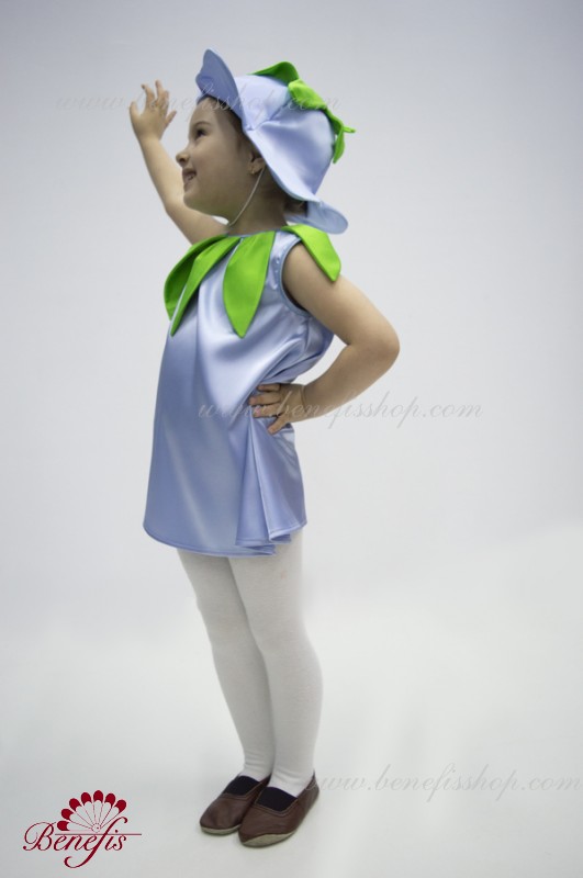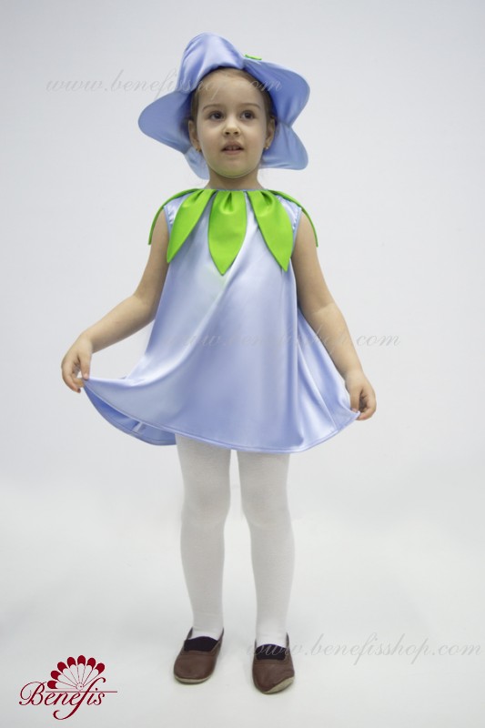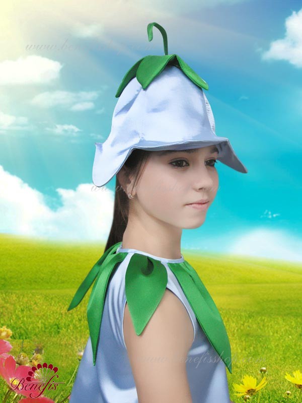 Платье выполнено из атласа. Вырез и головной убор украшены лепестками