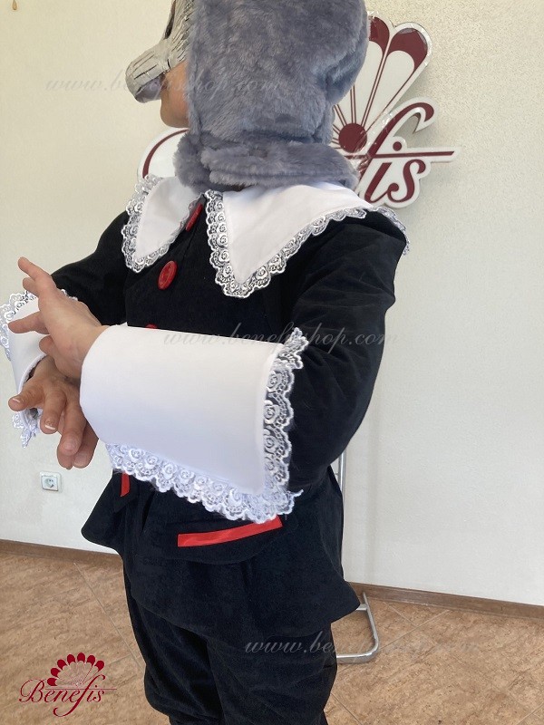 Детали: колет, бриджи, шапка из меха под маску. Выполнен из бархата. Отделка вискоза. Маска не входит в стоимость костюма.