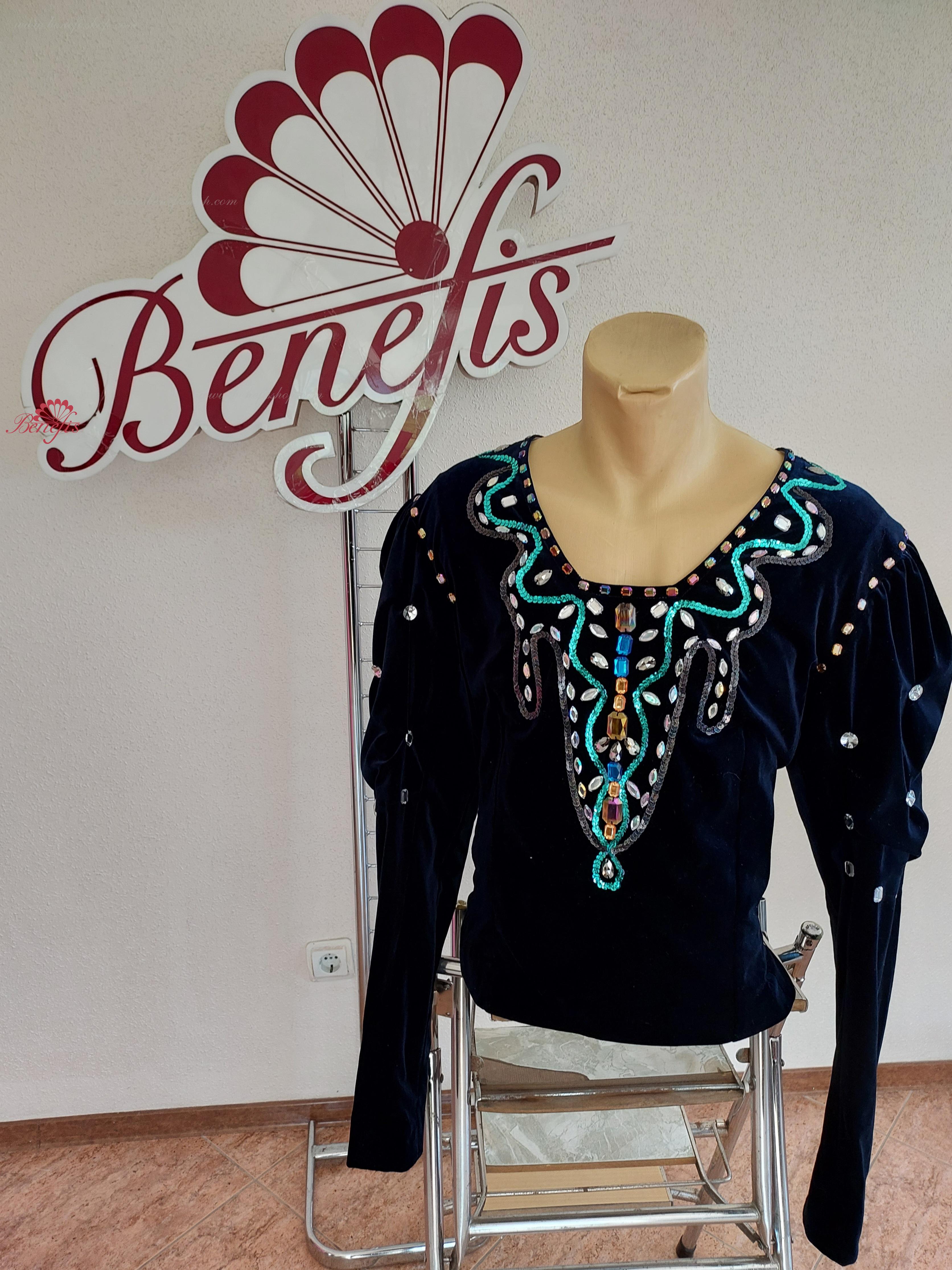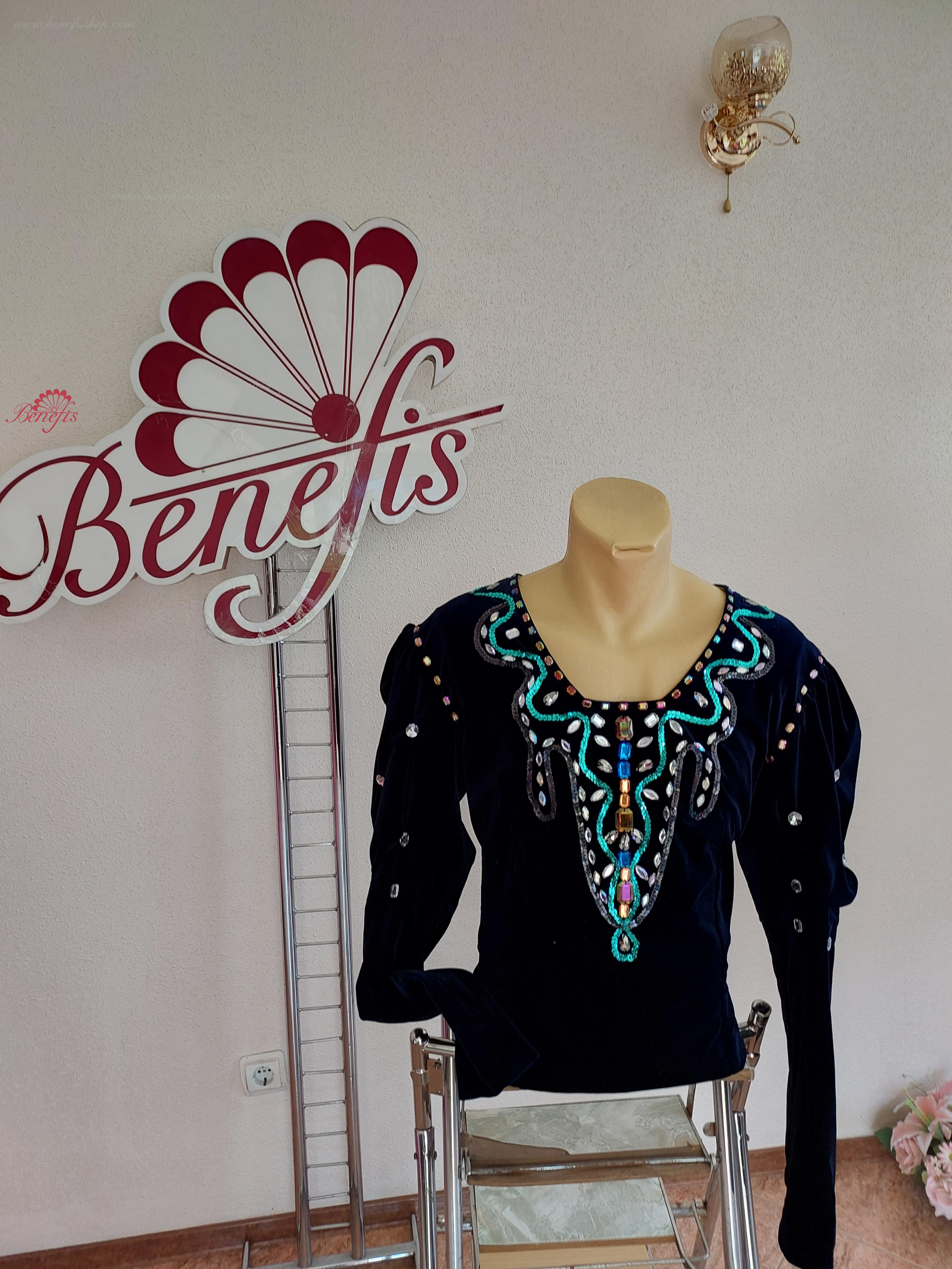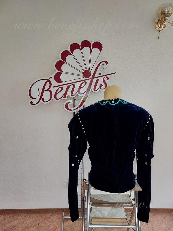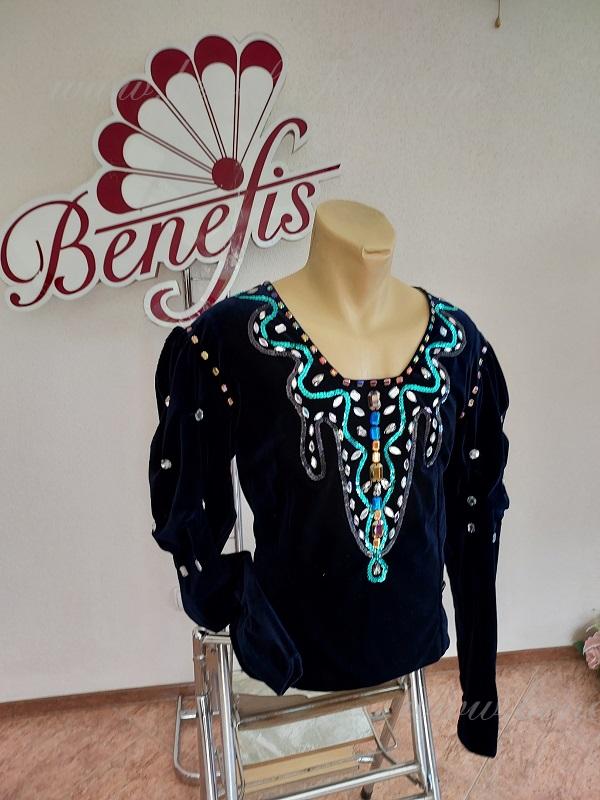 Этот профессиональный сценический костюм с приталенным силуэтом выполняется из эластичного бархата на плотной основе.