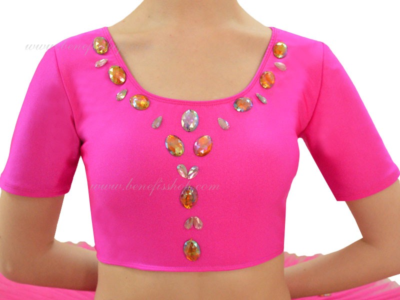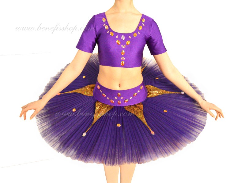 Лиф - состоит из эластичной ткани (бифлекс). На лифе используется декор золотистого цвета в виде страз.