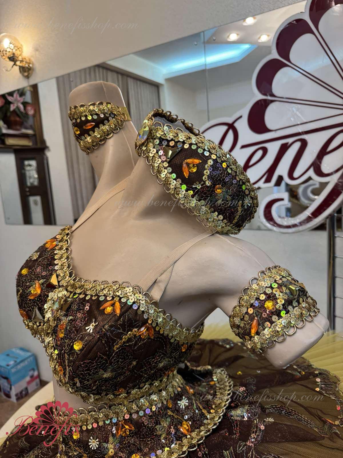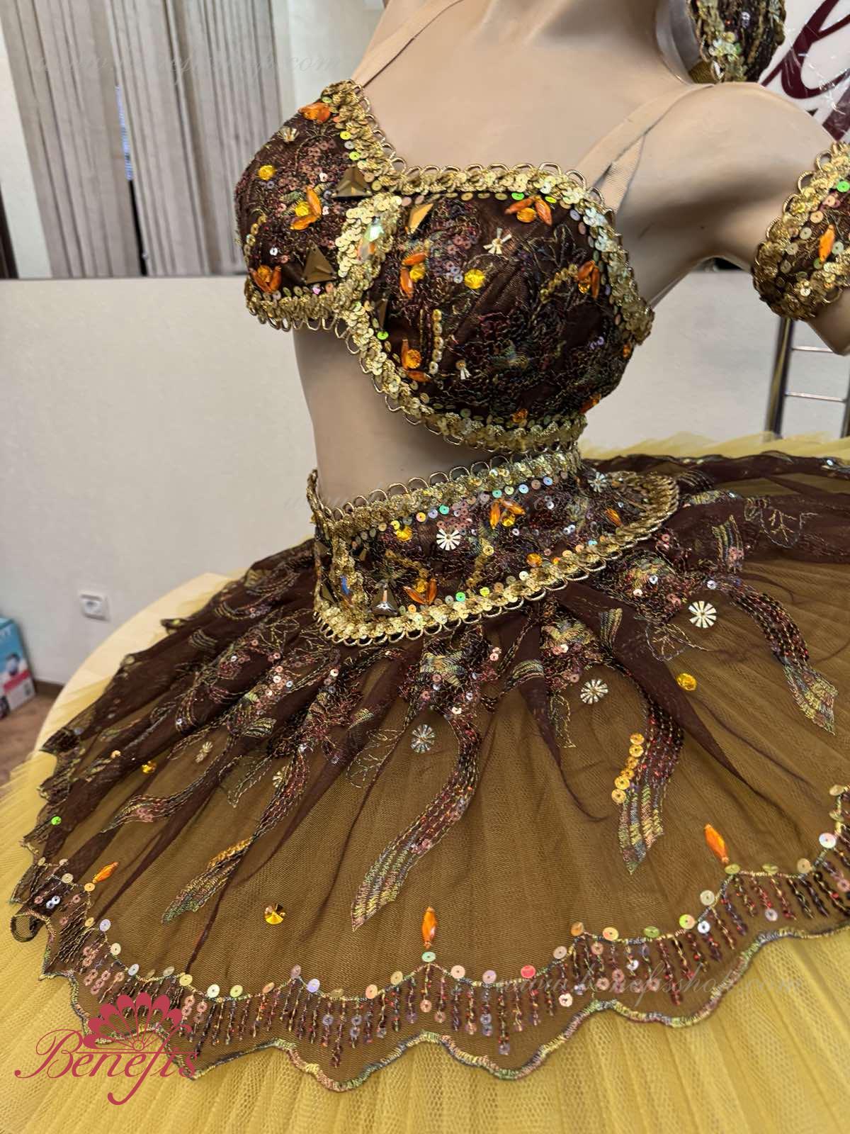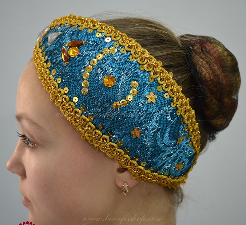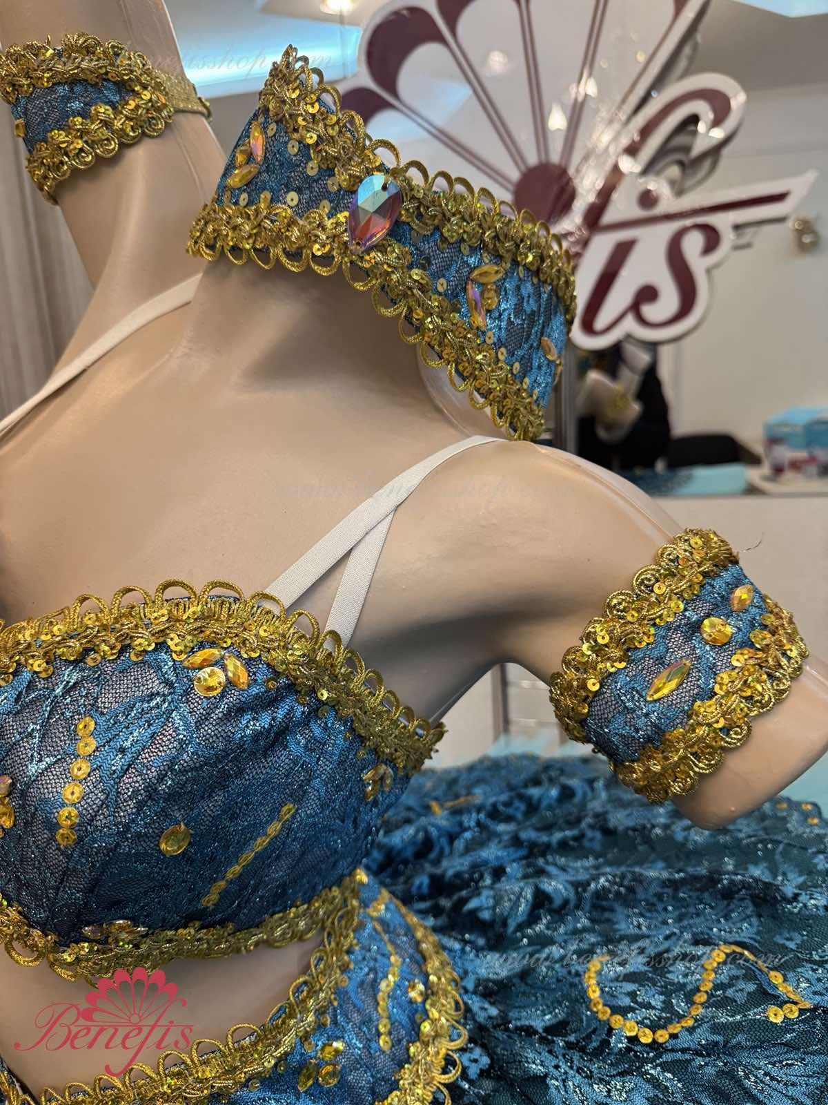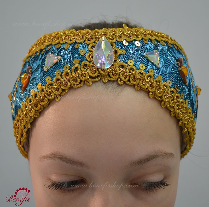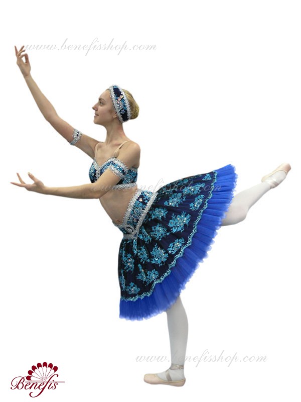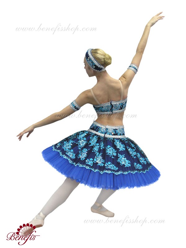 Роскошный балетный костюм выполнен в лучших восточных традициях. Укороченный лиф выполняется отдельно от юбки пачки, которая одевается на бёдра.