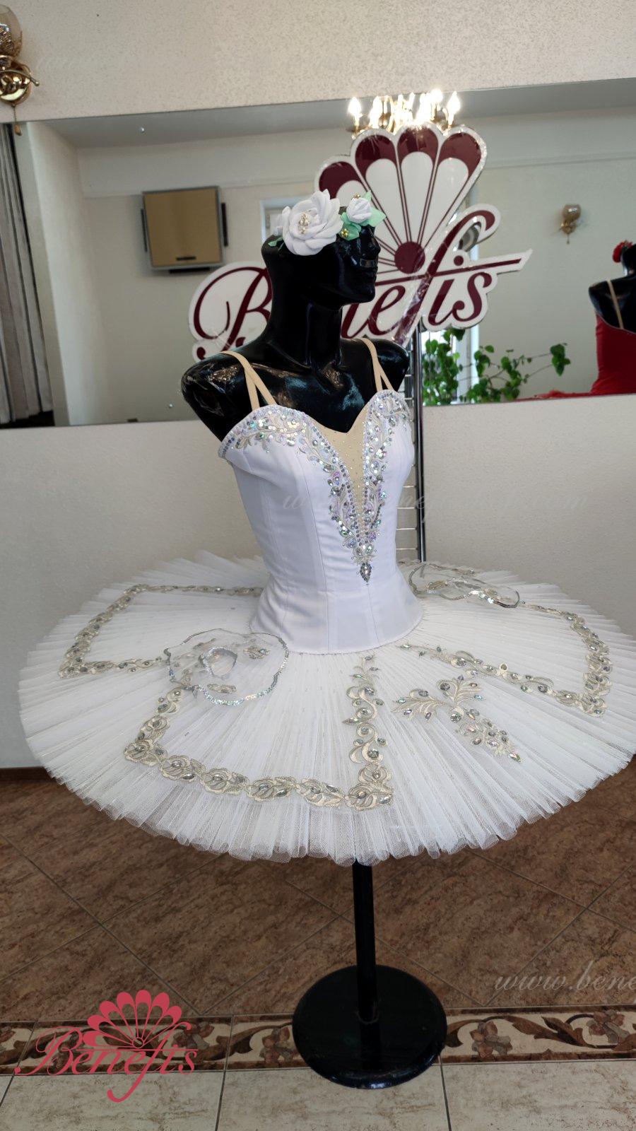 Костюм может быть использован в балетах «Баядерка», «Щелкунчик» - для роли Маша, «Спящая красавица» - для роли Аврора и как концертный костюм во многих балетных вариациях.