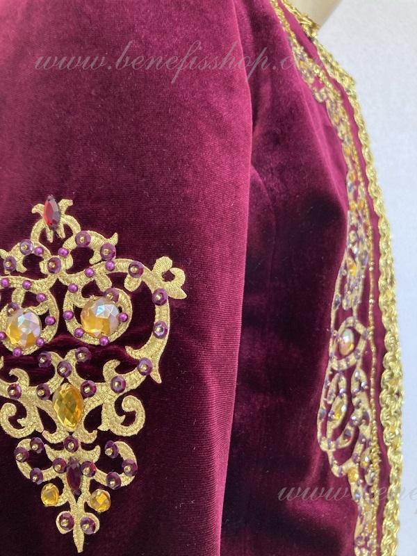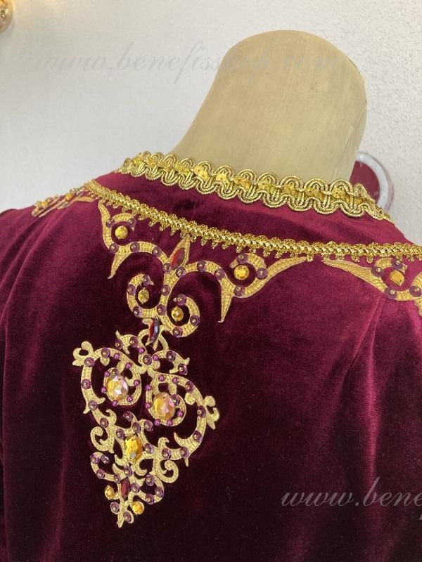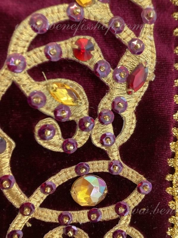 Детали: колет. Колет изготовлен из бархата. Декор: аппликации, тесьма, стразы, блестки.