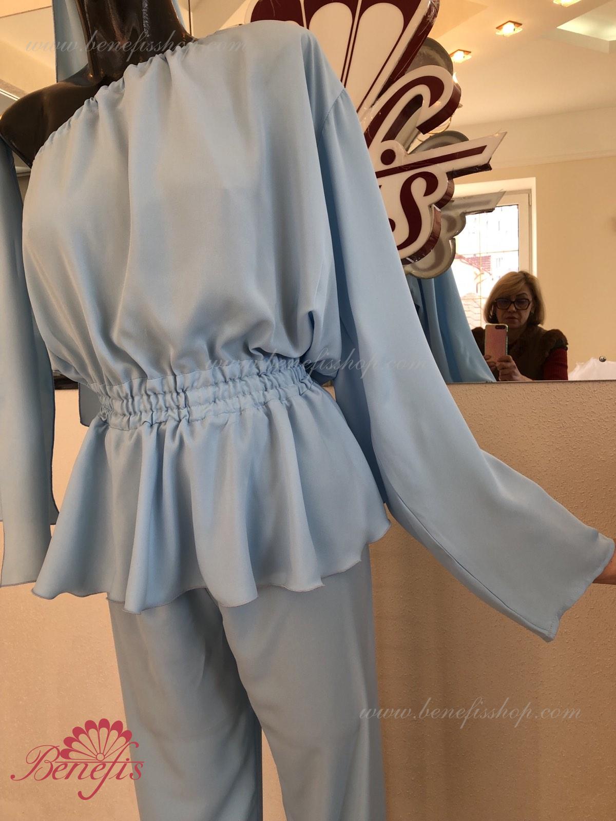 Детали: блузка, брюки, головной убор, завязка для руки. Изготовлен из шифона.