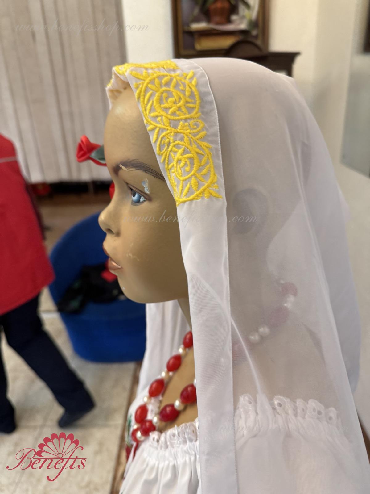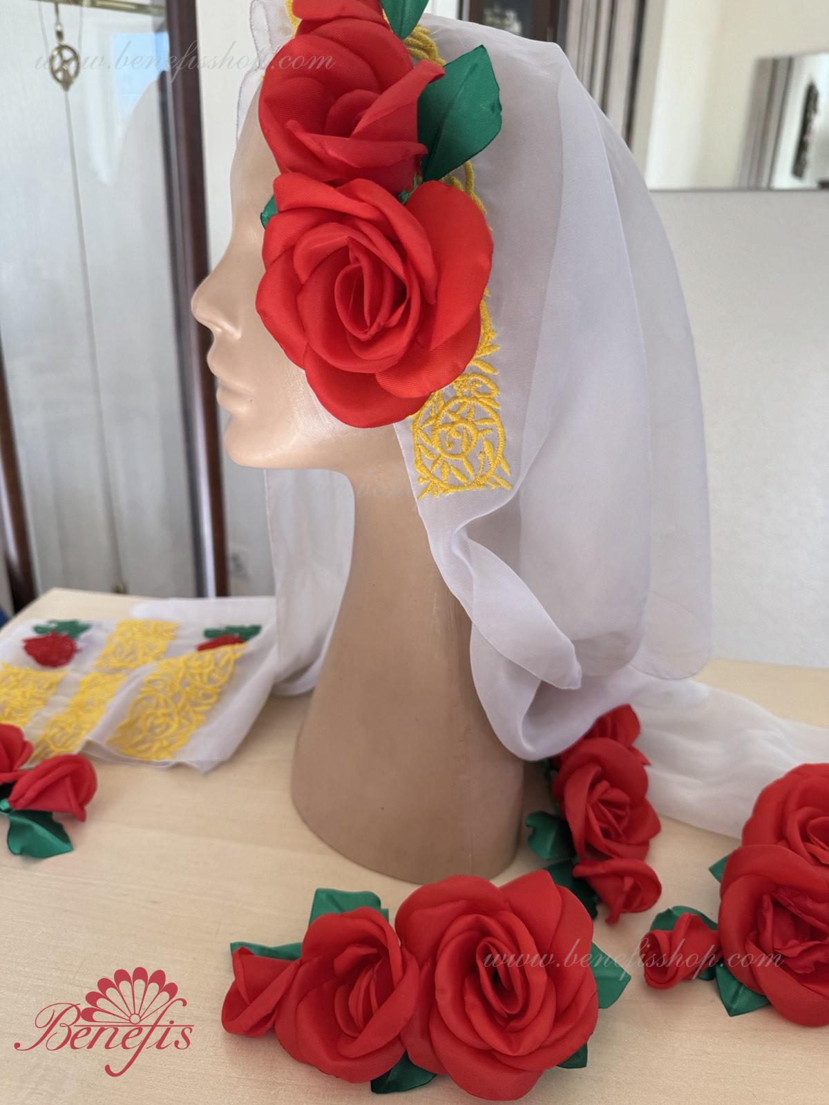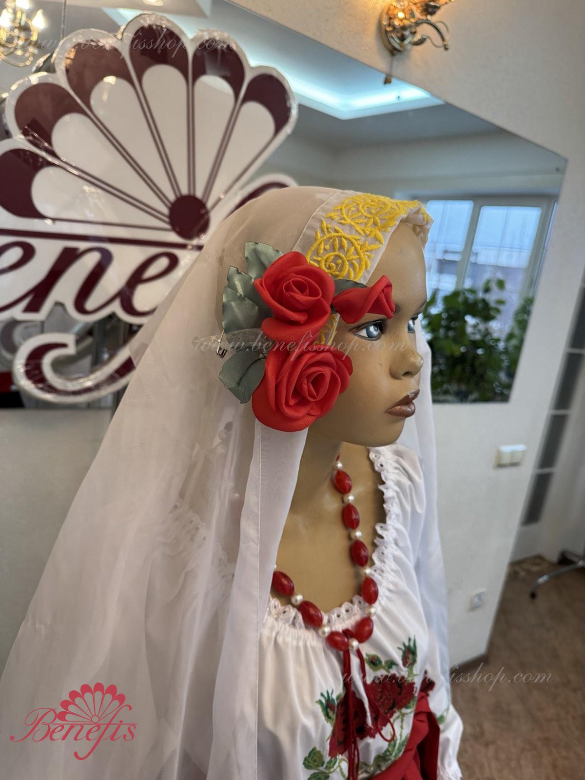 Длинная фата-покрывало, украшавшаяся вышивкой цветочными мотивами. При украшении использовали золотые нити. Блуза, пояс и юбка не входит в цену.