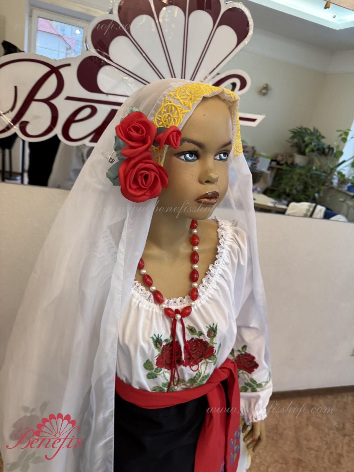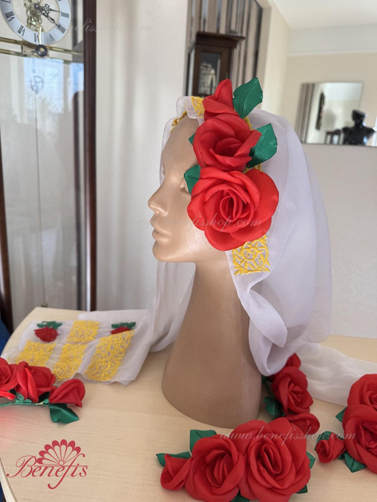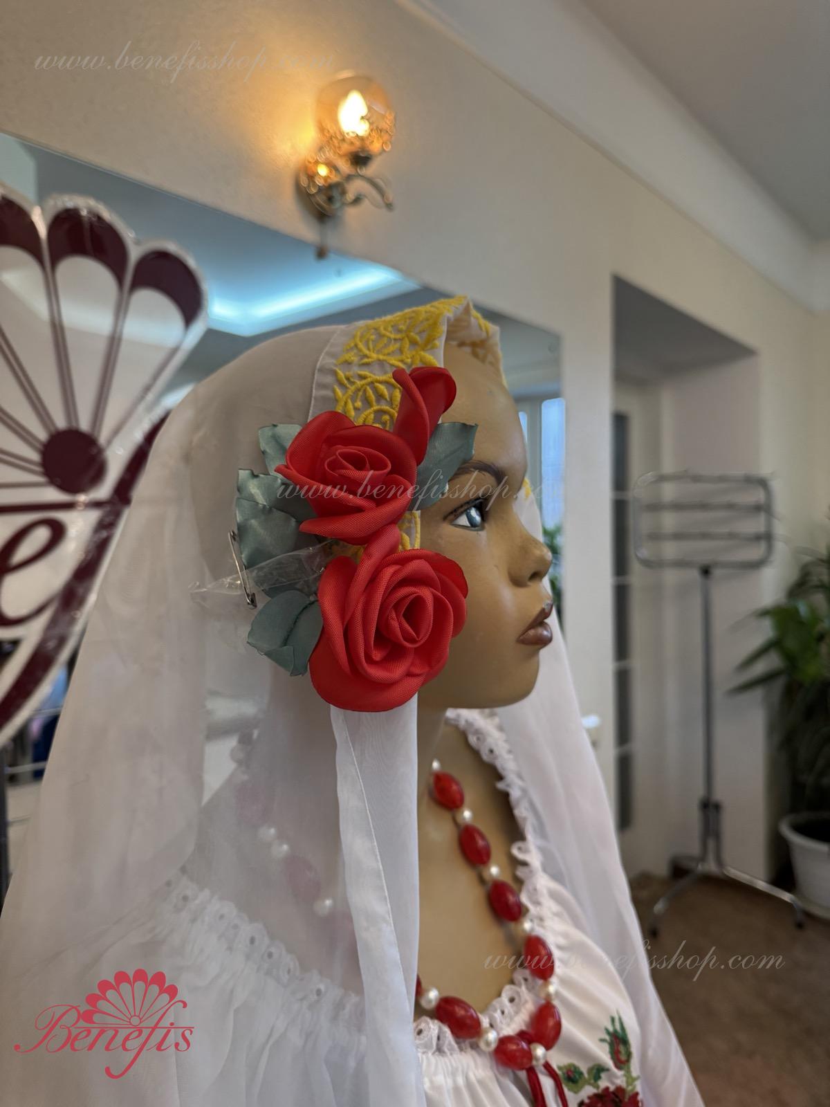 Головной убор состоит из традиционного головного платка "марамэ" и цветка. Праздничный головной убор для женщин молдавского национального костюма.