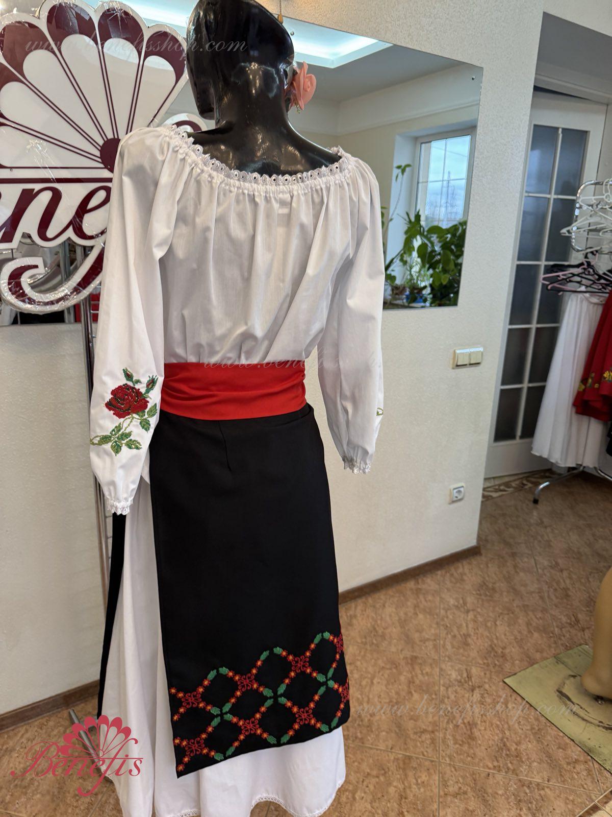Для женщин и девочек: состоящие из белой блузки и подъюбника, юбки и пояса, все имитируя национальные Молдавские модели. Блузка и пояс не входит в цену.