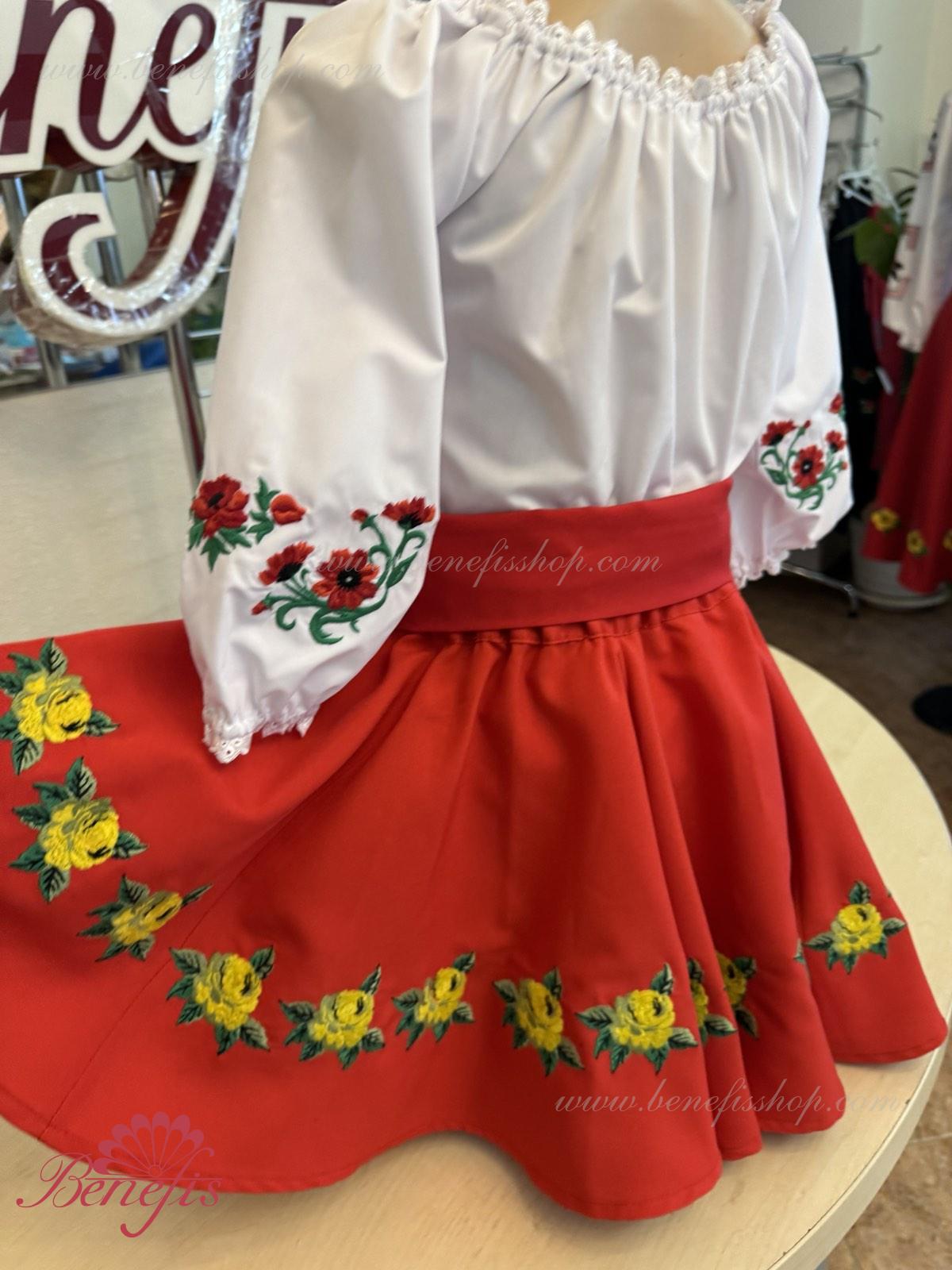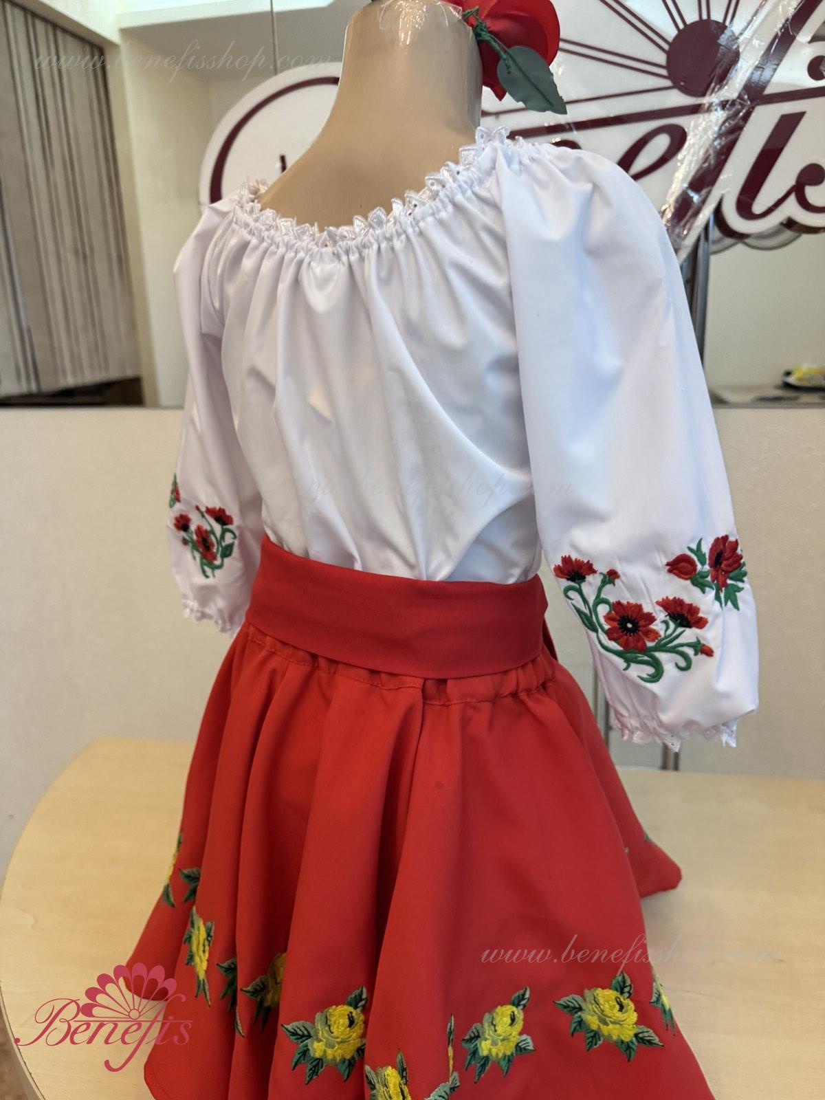 Для женщин и девочек: состоящие из белой блузки и подъюбника, юбки и пояса, все имитируя национальные Молдавские модели. Костюмы выполняются, соблюдая лучшие традиции Молдавской культуры. Блузка, пояс и жилетка не входит в цену.