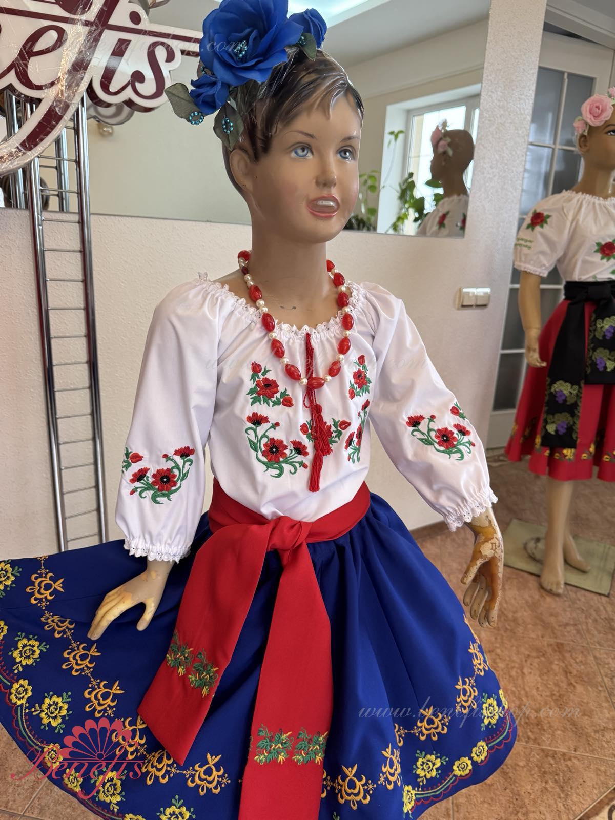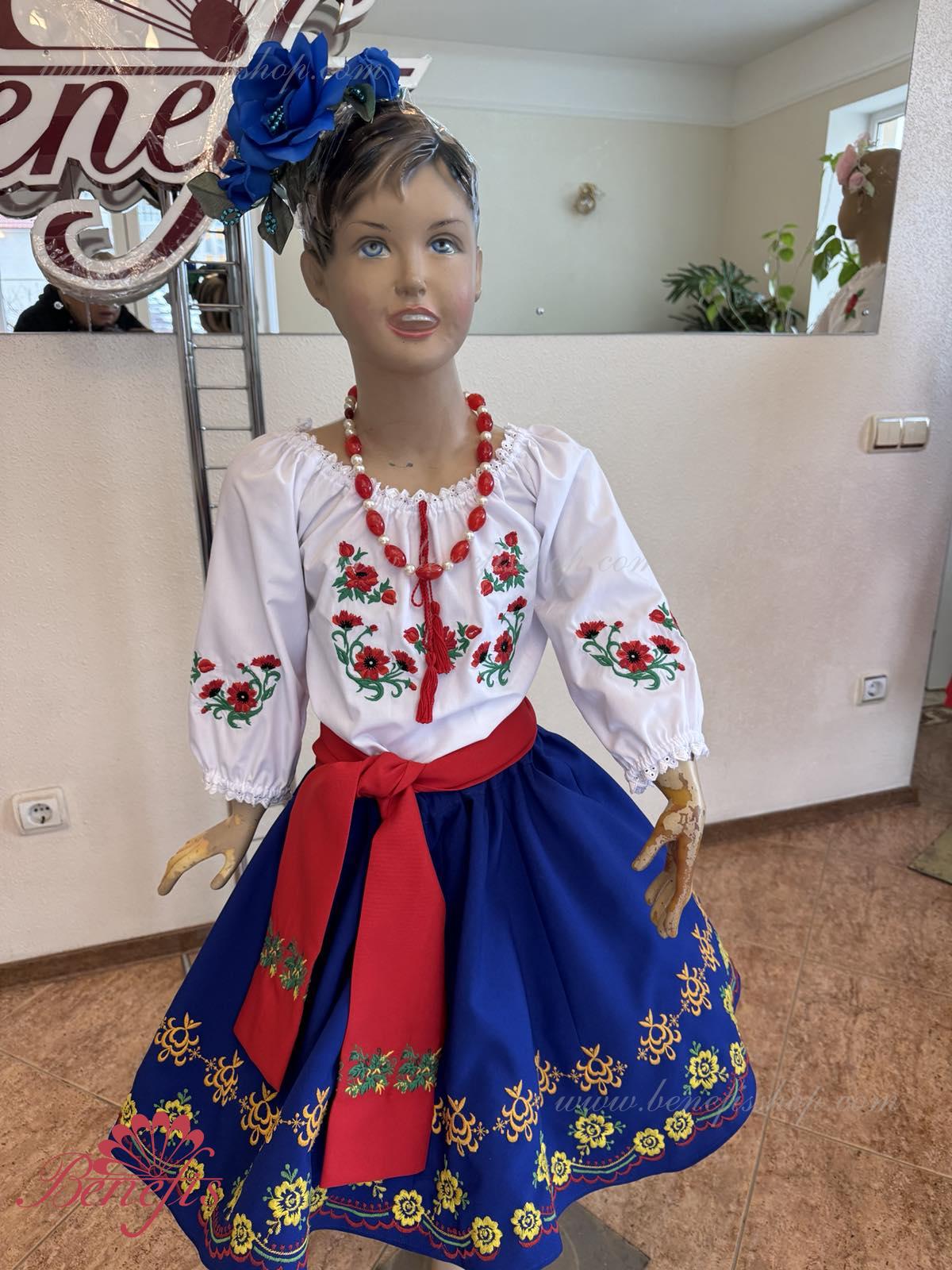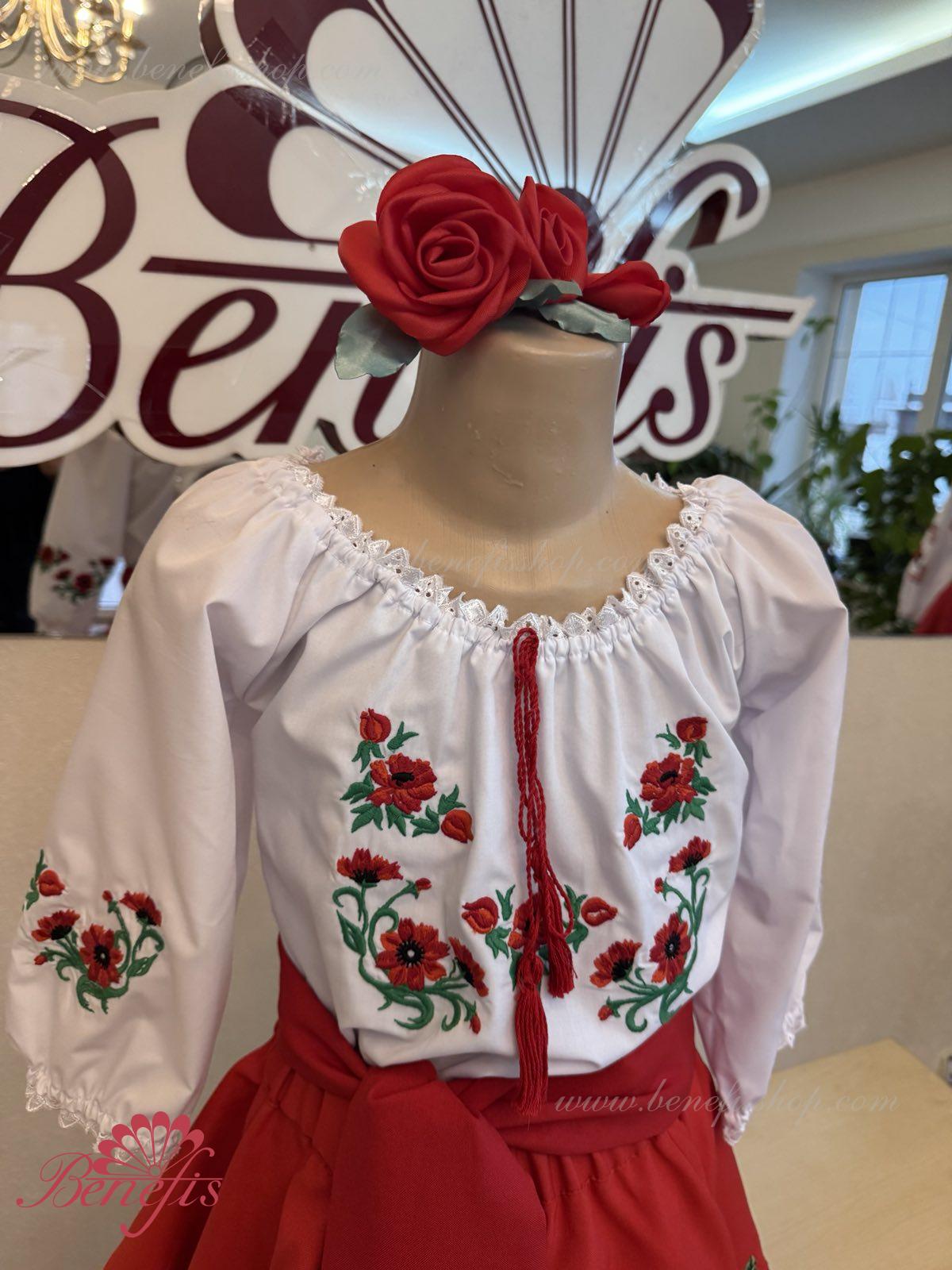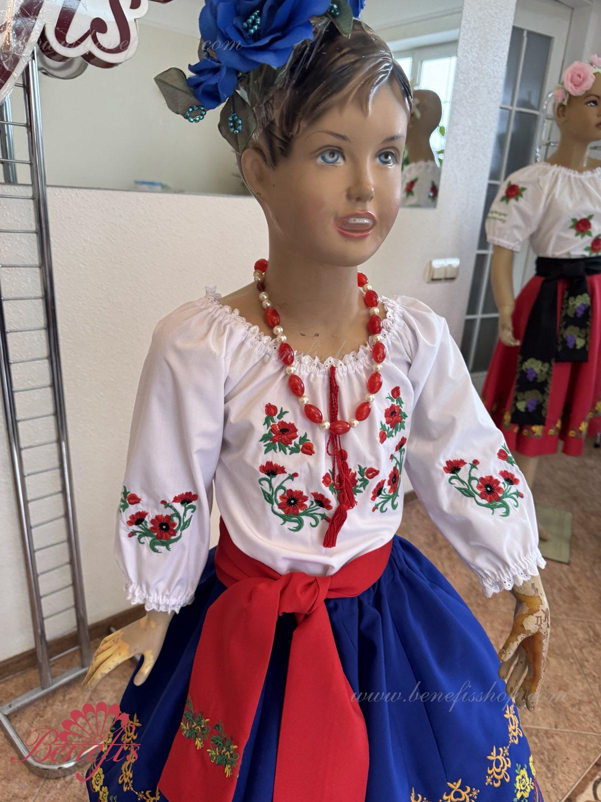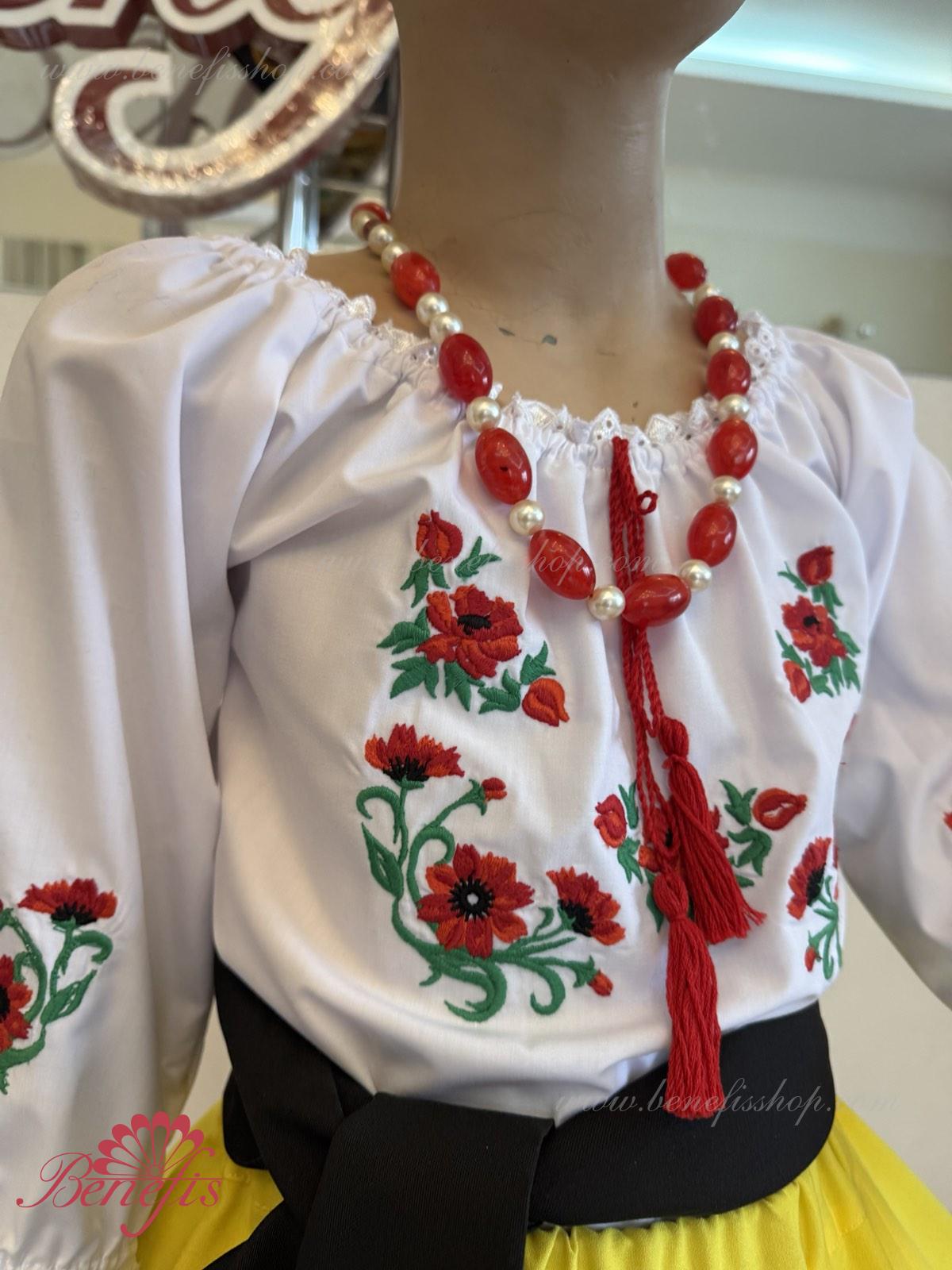 Блуза выполнена из сорочечной ткани. На горловине и рукавах вставлена резинка и от декорирована натуральным кружевом . Вышивка выполнена в национальном стиле на специальной машине. Юбки и пояса не входит в цену В дополнение к блузке вы можете заказать юбки J0354(4811),J0112(4473),J0113(4474) и пояса J0372(4940),J0360(4312).