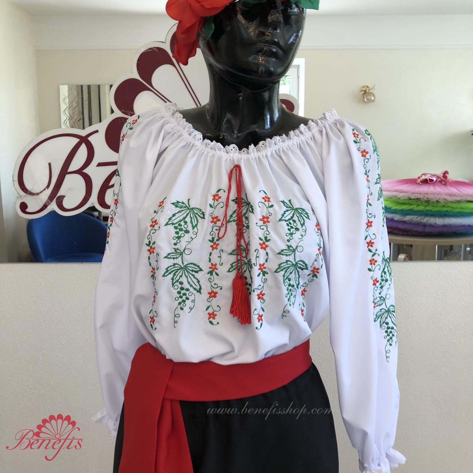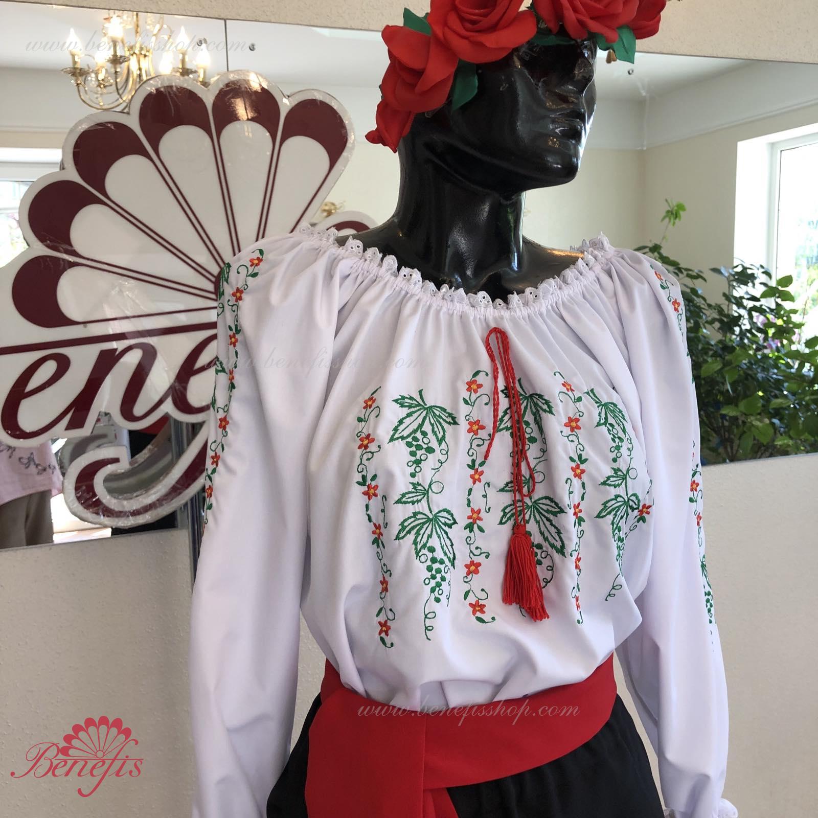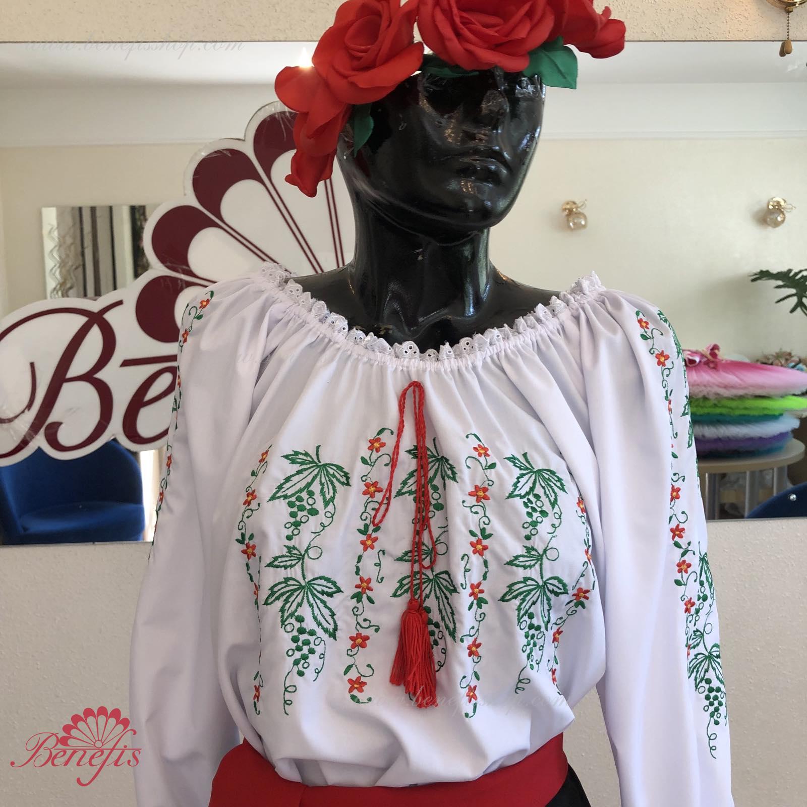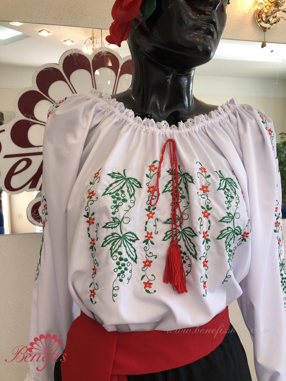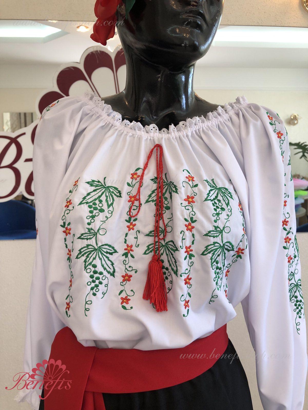 Блуза выполнена из сорочечной ткани. На горловине и рукавах вставлена резинка и от декорирована натуральным кружевом . Вышивка выполнена в национальном стиле на специальной машине.