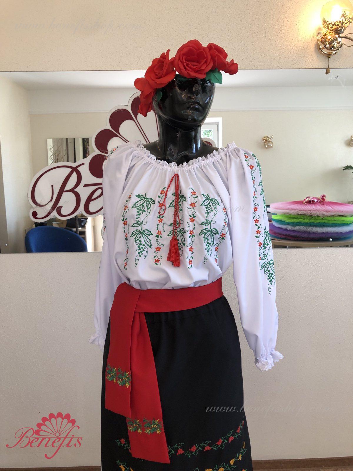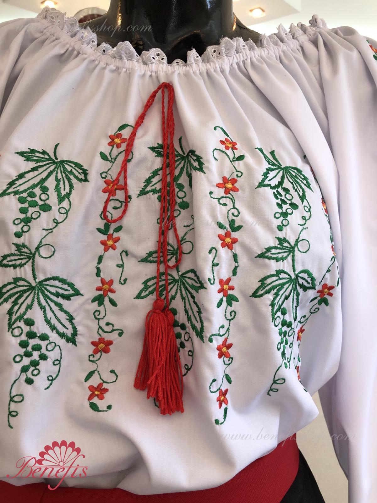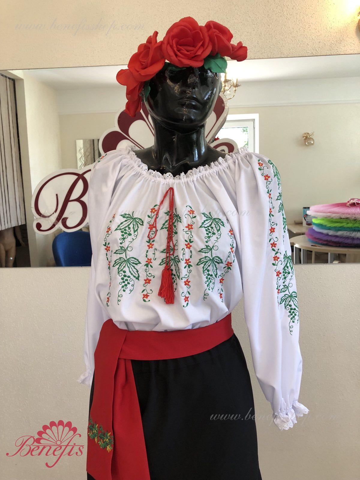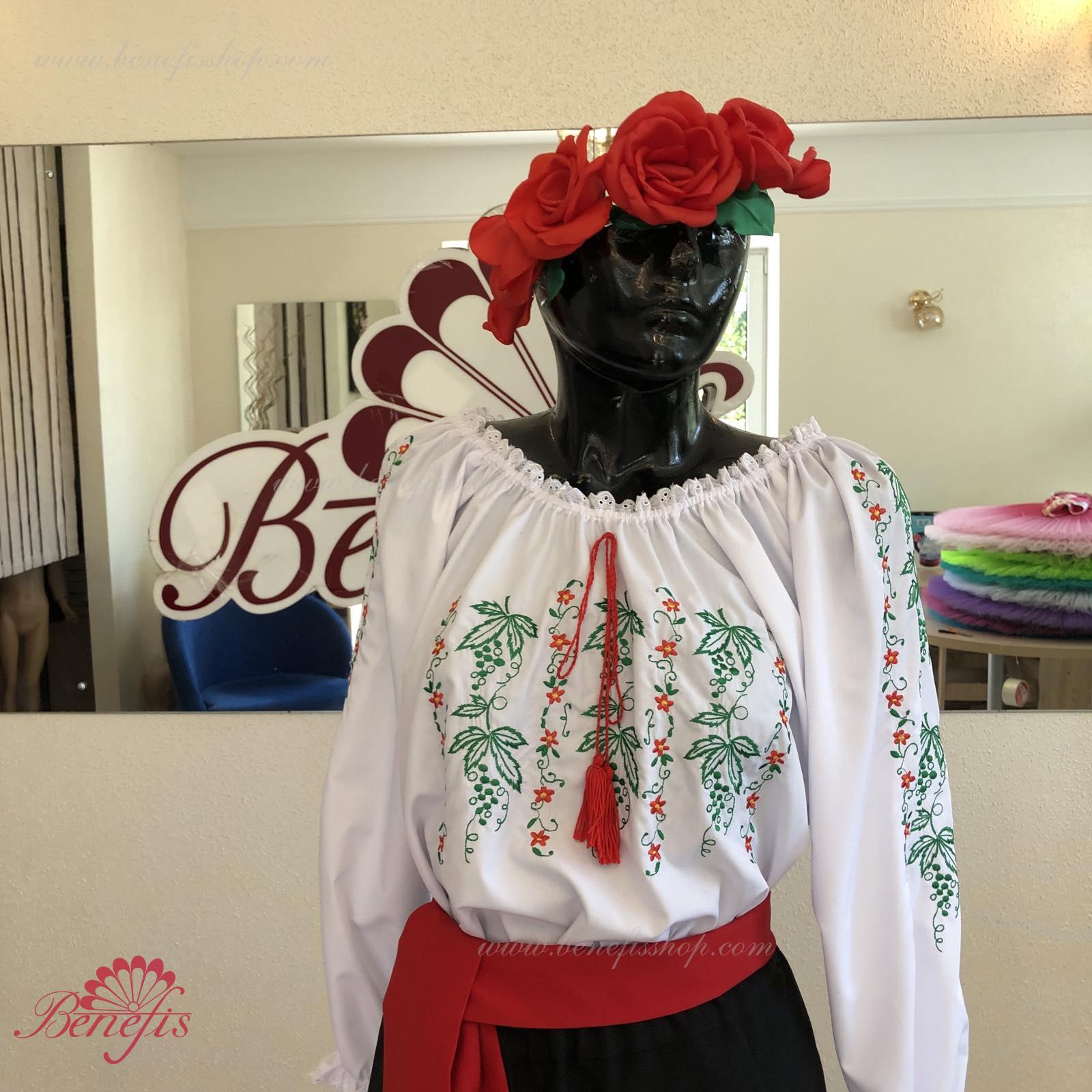 Блуза выполнена из сорочечной ткани. На горловине и рукавах вставлена резинка и от декорирована натуральным кружевом . Вышивка выполнена в национальном стиле на специальной машине.