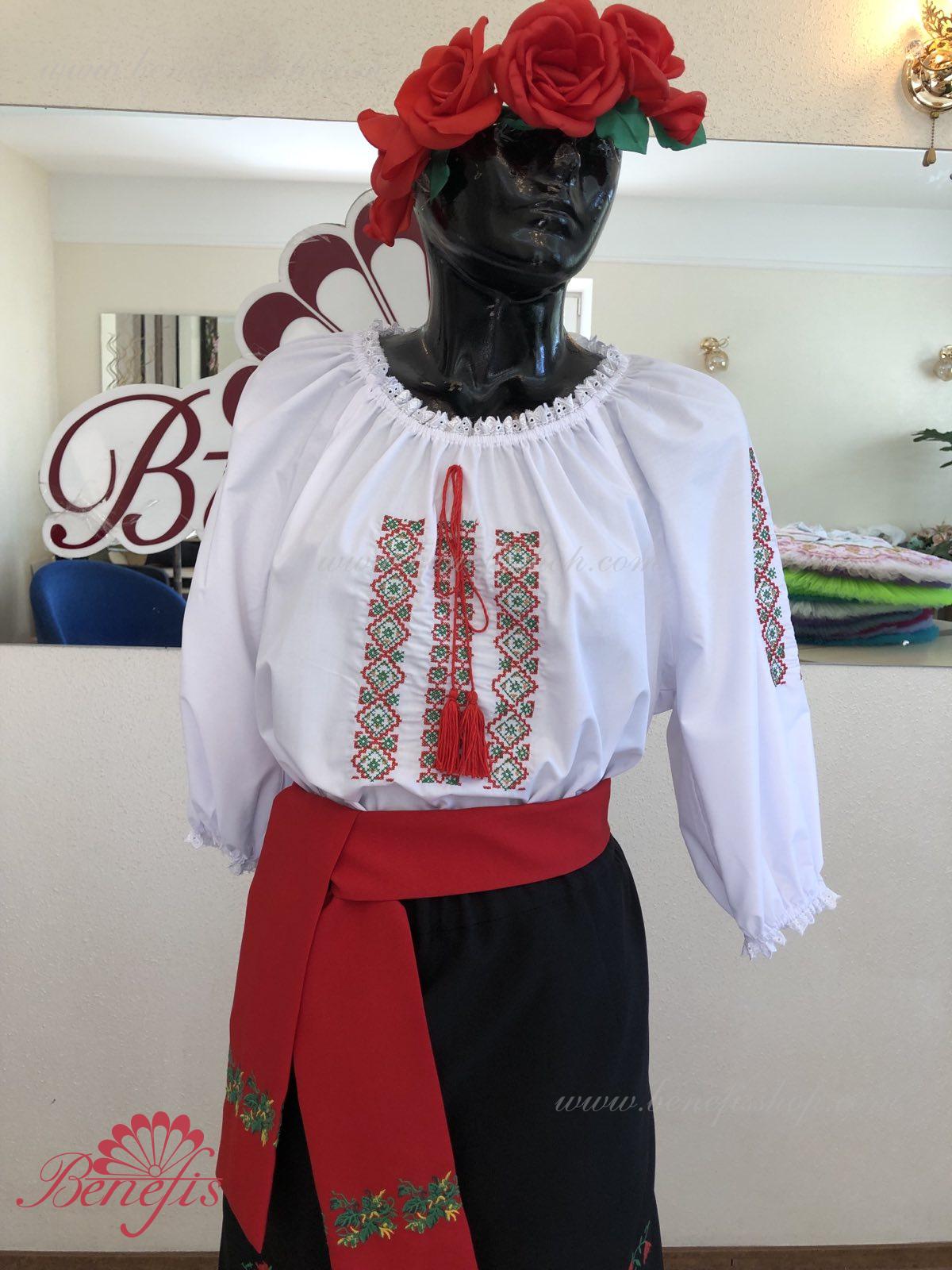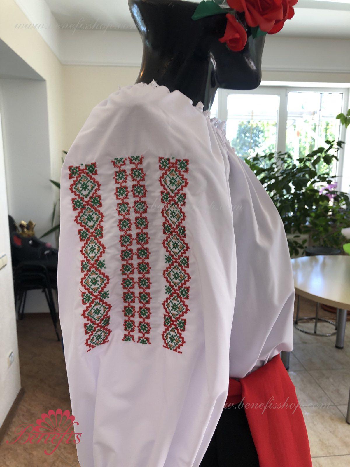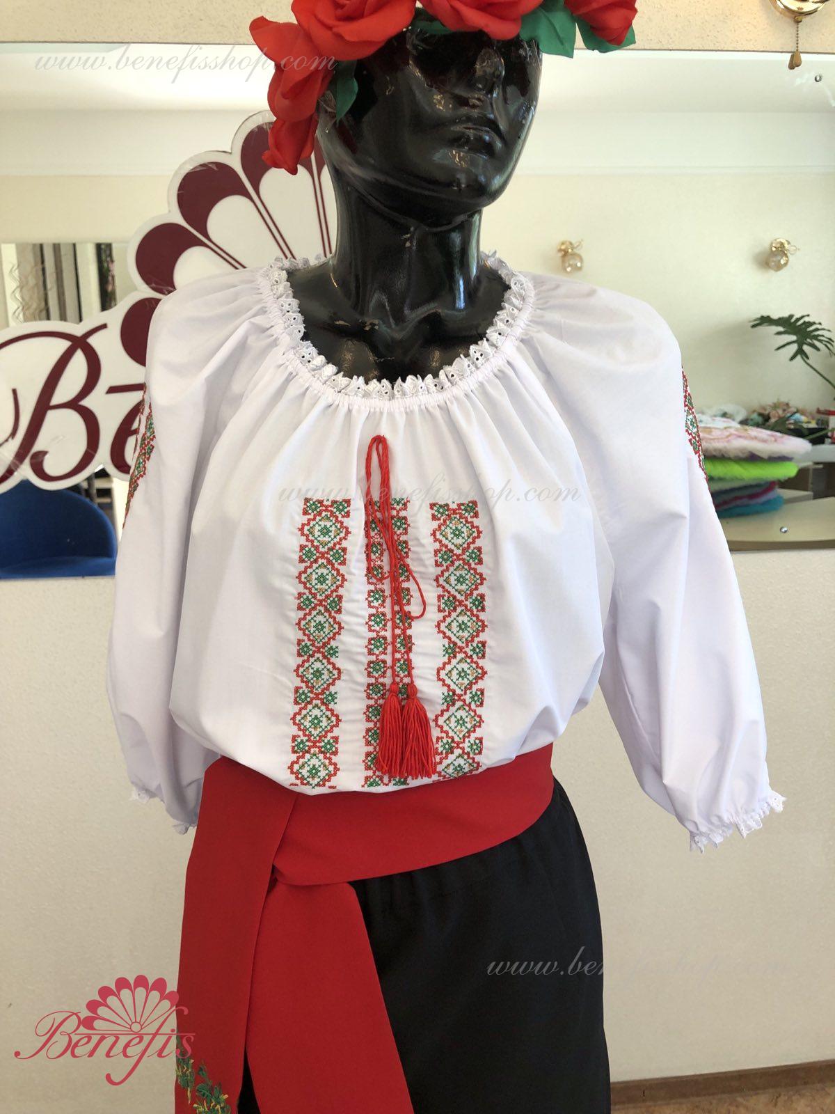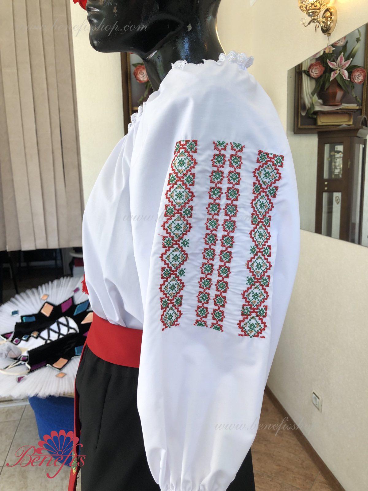 Блуза выполнена из сорочечной ткани. На горловине и рукавах вставлена резинка и от декорирована натуральным кружевом . Вышивка выполнена в национальном стиле на специальной машине.