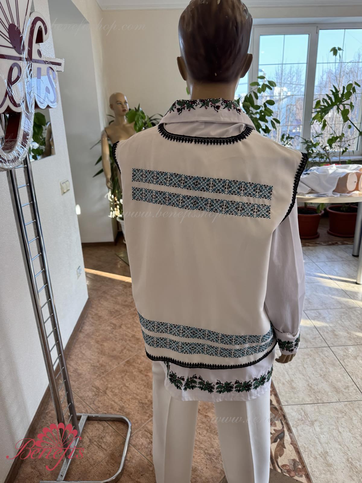 Жилетка изготовлена из натуральных высококачественных материалов. Вышивка выполнена на специальной машине. Рубашка, пояс и брюки не входит в цену. С жилеткой вы можете заказать рубашку J0238(4951), пояс J0372 (4940) и брюки J0340(4087).