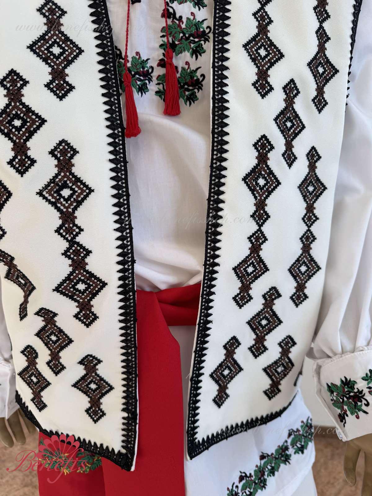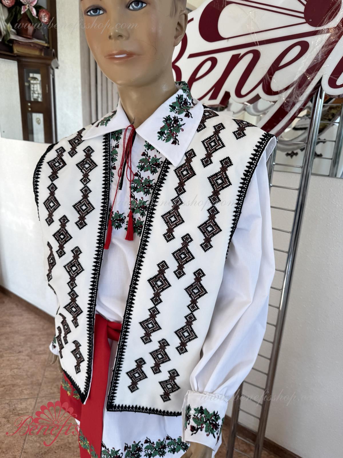 Жилетка изготовлена из натуральных высококачественных материалов. Вышивка выполнена на специальной машине. Рубашка, пояс и брюки не входит в цену. С жилеткой вы можете заказать рубашку J0238(4951), пояс J0372 (4940) и брюки J0340(4087).
