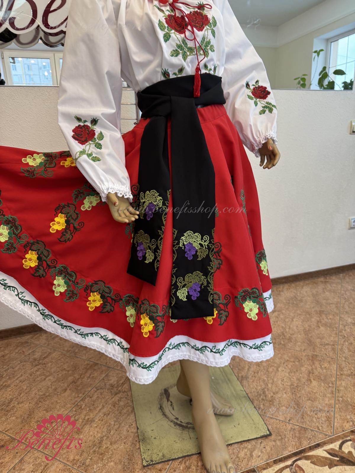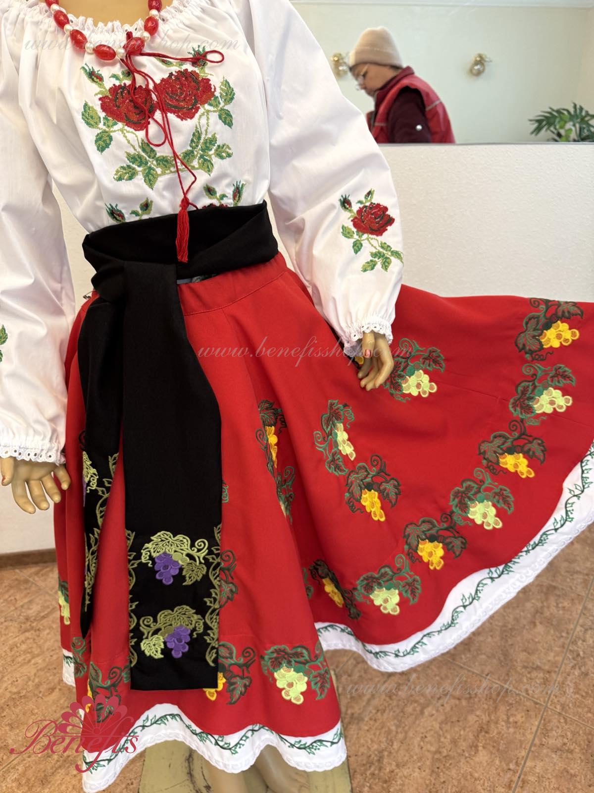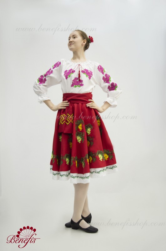 Для женщин и девочек: состоящие из белой блузки и подъюбника, юбки и пояса, все имитируя национальные Молдавские модели. Костюмы выполняются, соблюдая лучшие традиции Молдавской культуры. Блузка и пояс не включены в цену. Кроме того, с юбкой можно заказать блузку J0348 и пояс J0344.