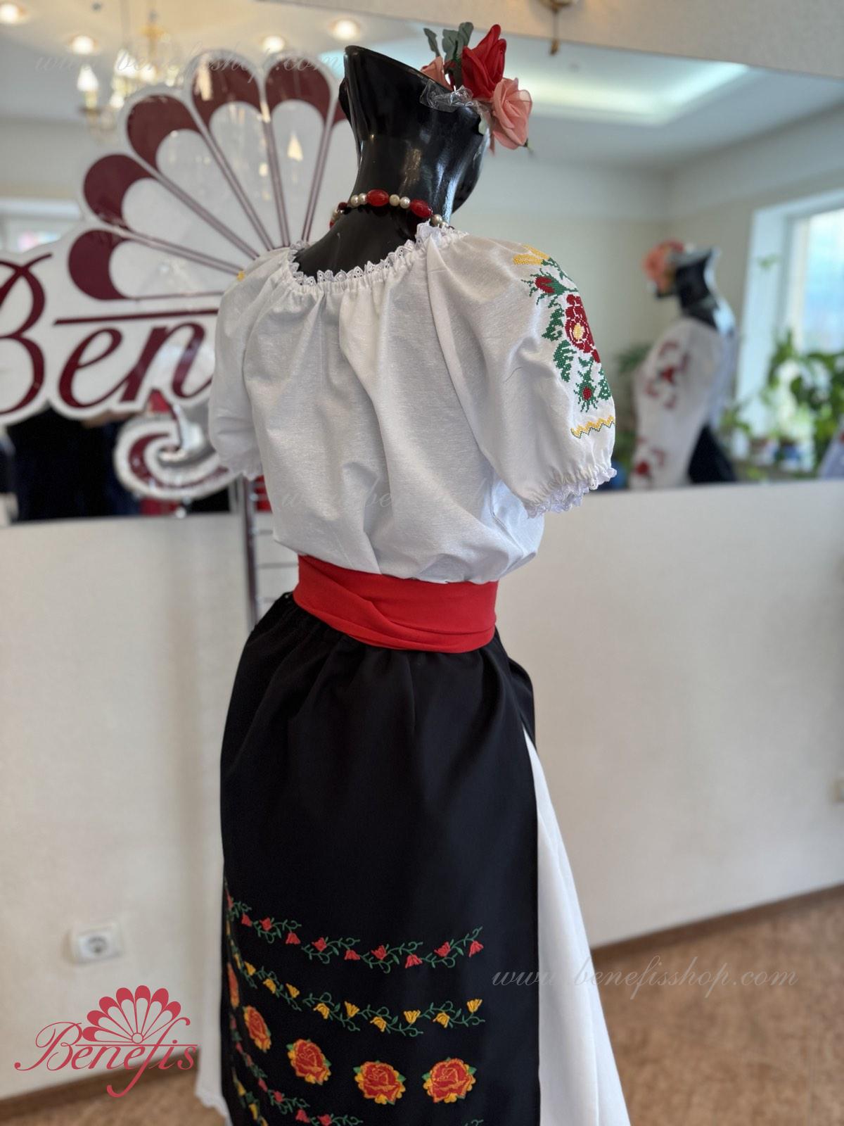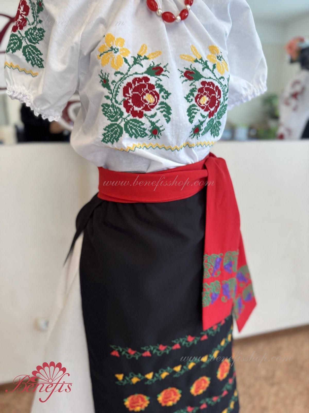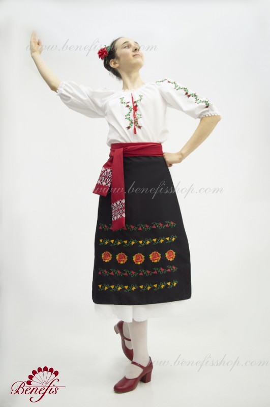 Для женщин и девочек: состоящие из белой блузки и подъюбника, юбки и пояса, все имитируя национальные Молдавские модели. Костюмы выполняются, соблюдая лучшие традиции Молдавской культуры. Блузка и пояс не включены в цену. Кроме того, с юбкой можно заказать блузку J0365 и пояс J0370.