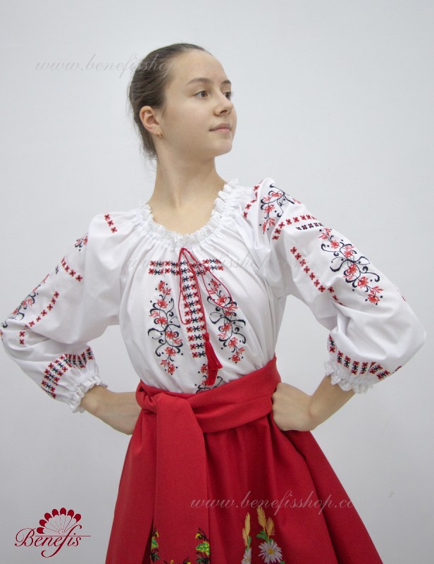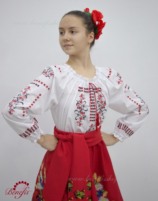 Блуза выполнена из сорочечной ткани. На горловине и рукавах вставлена резинка и от декорирована натуральным кружевом . Вышивка выполнена в национальном стиле на специальной машине.
