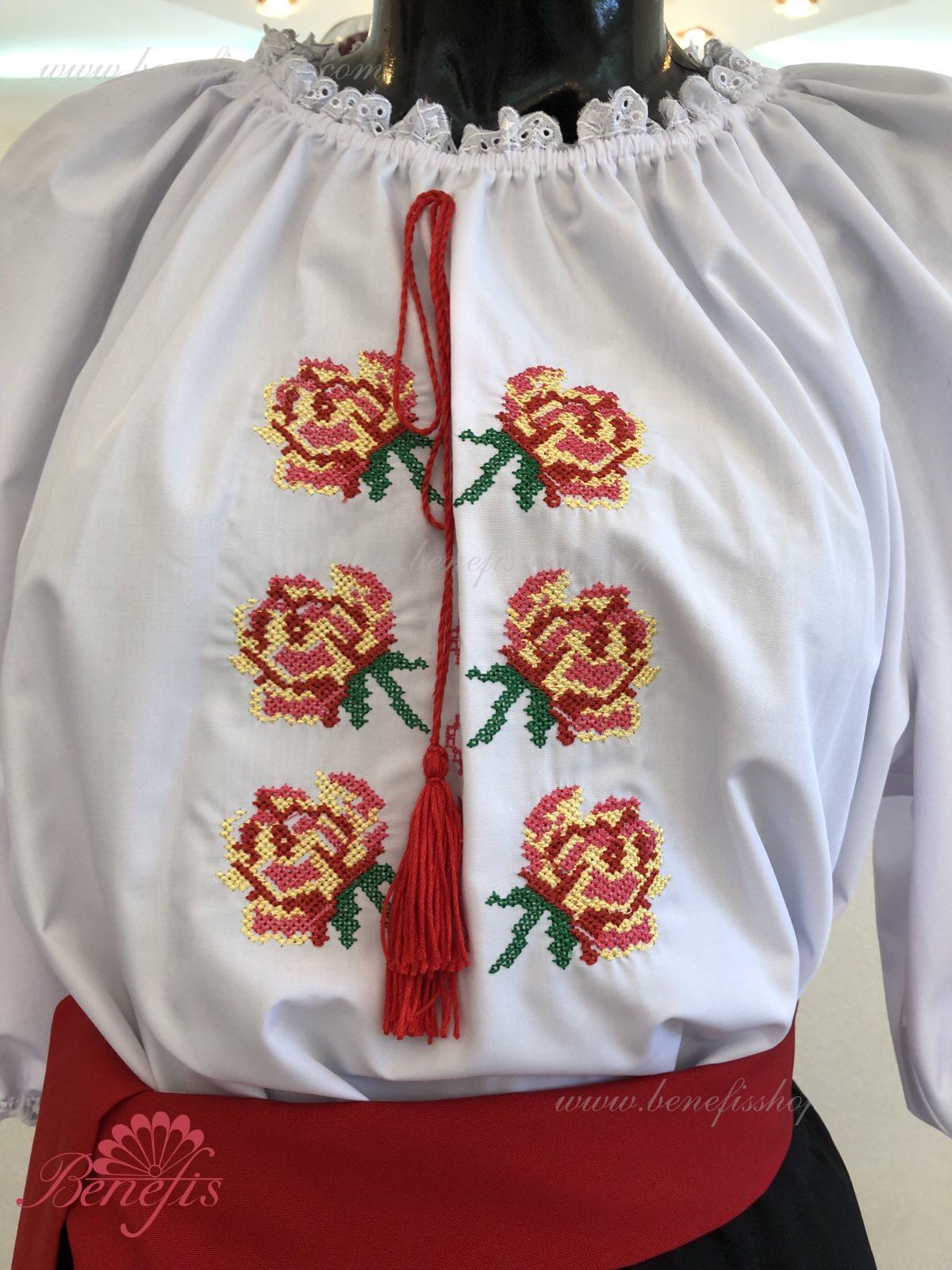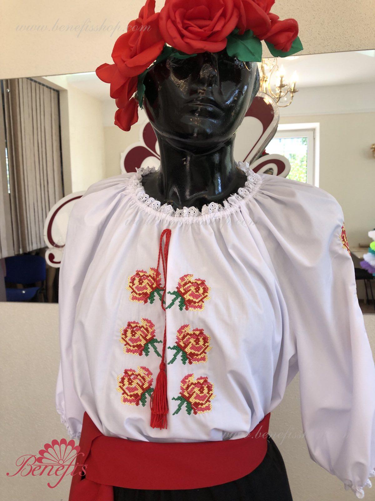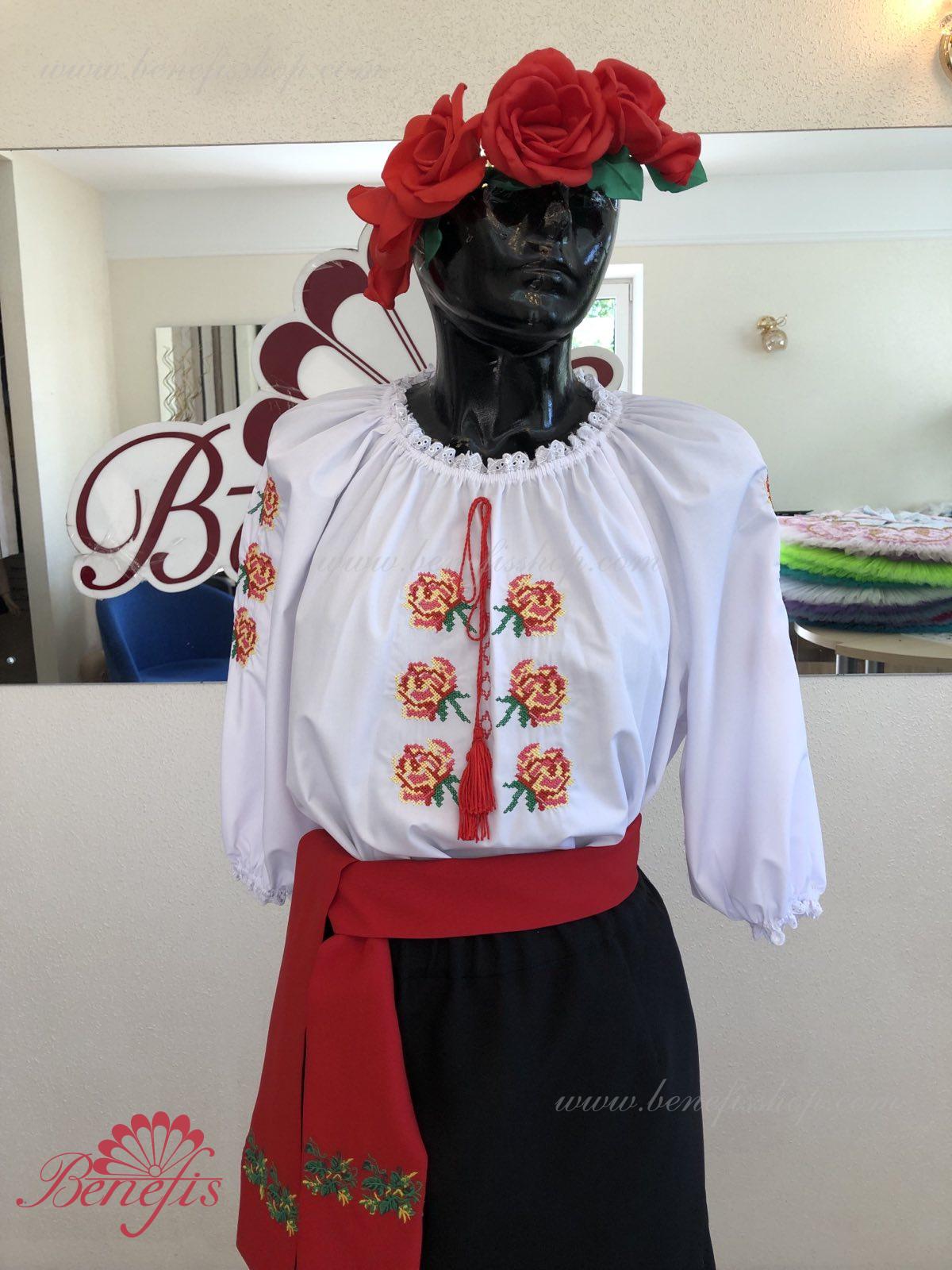 Блуза выполнена из сорочечной ткани. На горловине и рукавах вставлена резинка и от декорирована натуральным кружевом . Вышивка выполнена в национальном стиле на специальной машине.