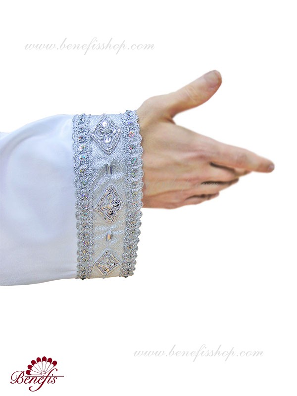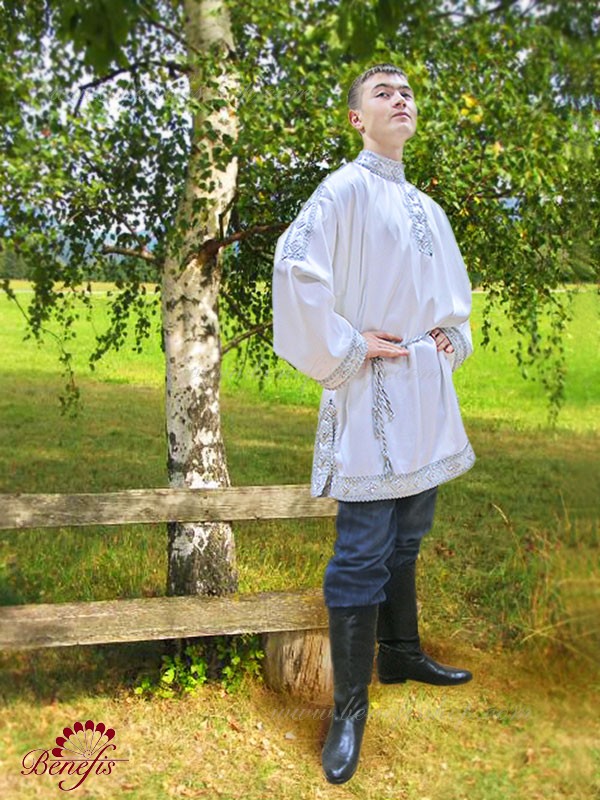 Рубашка сшита из креп-шифона. Рукава и воротник оторочены серебряной парчой, расшитой бусами и тесьмой.