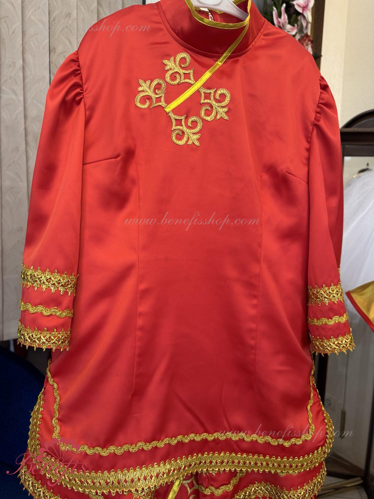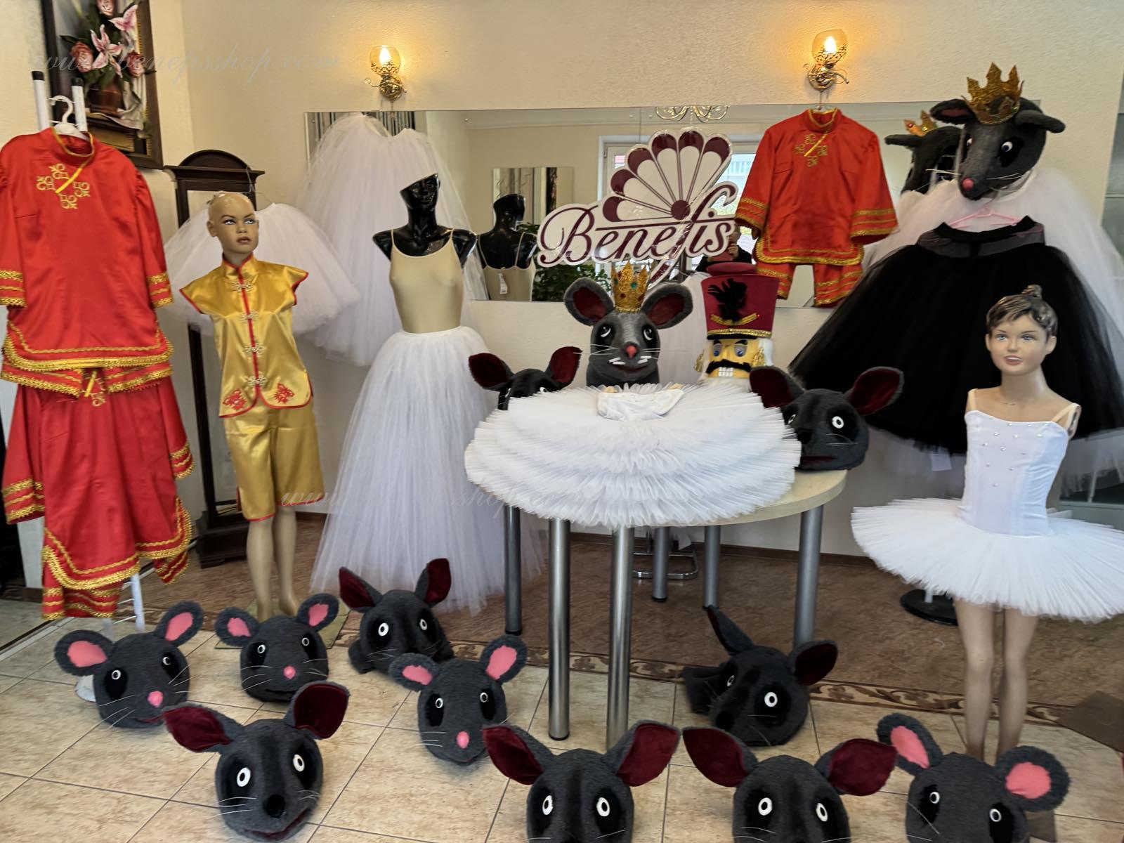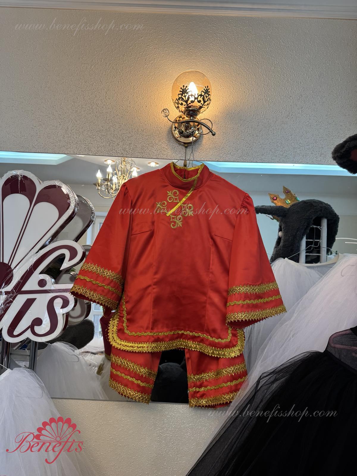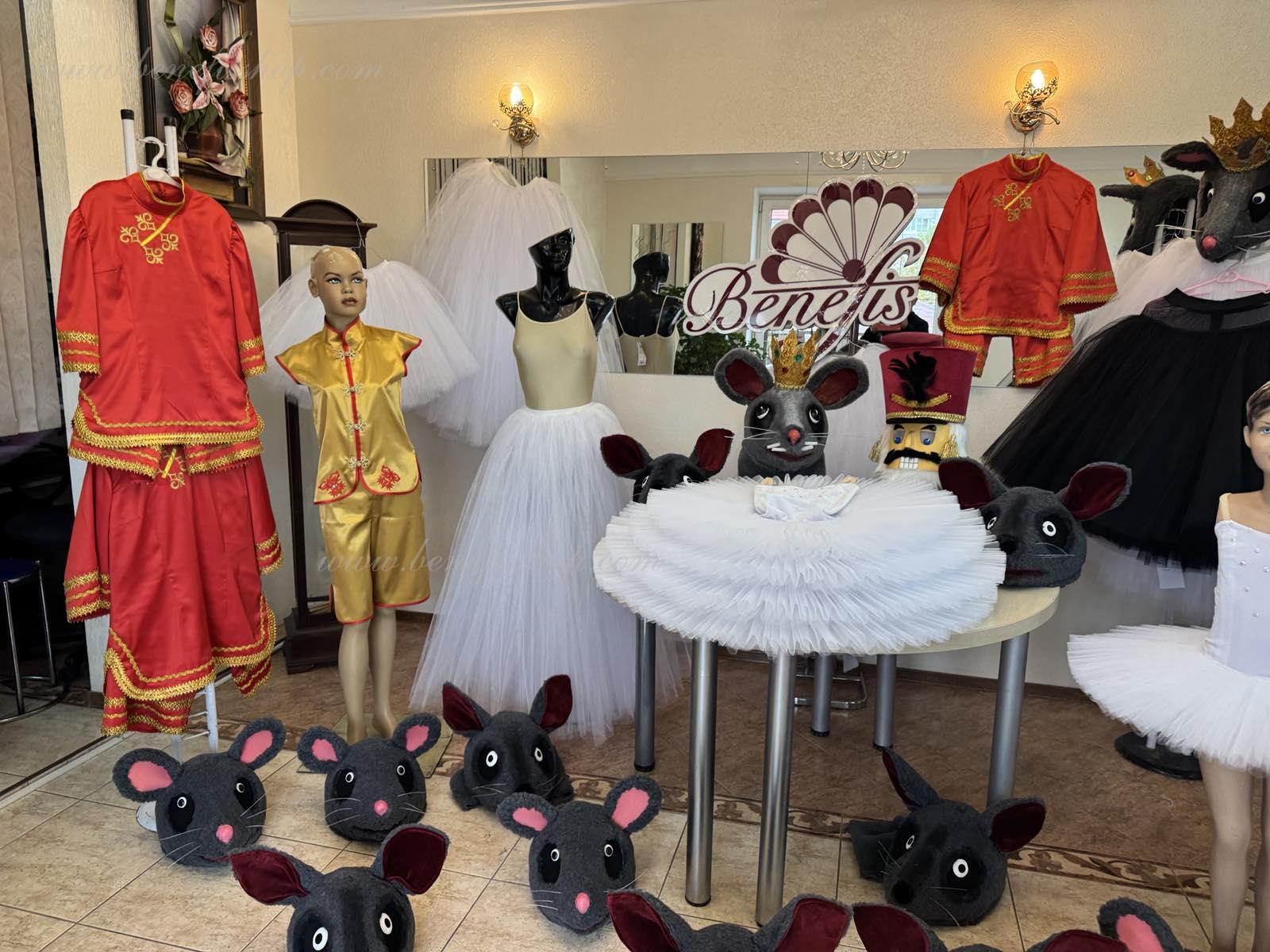 Сценический профессиональный балетный костюм выполнен из полуэластичной ткани атлас. В качестве декора используют два ряда тесьмы, косая бейка, две аппликации застежка.