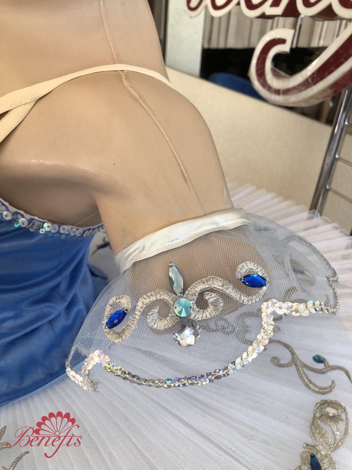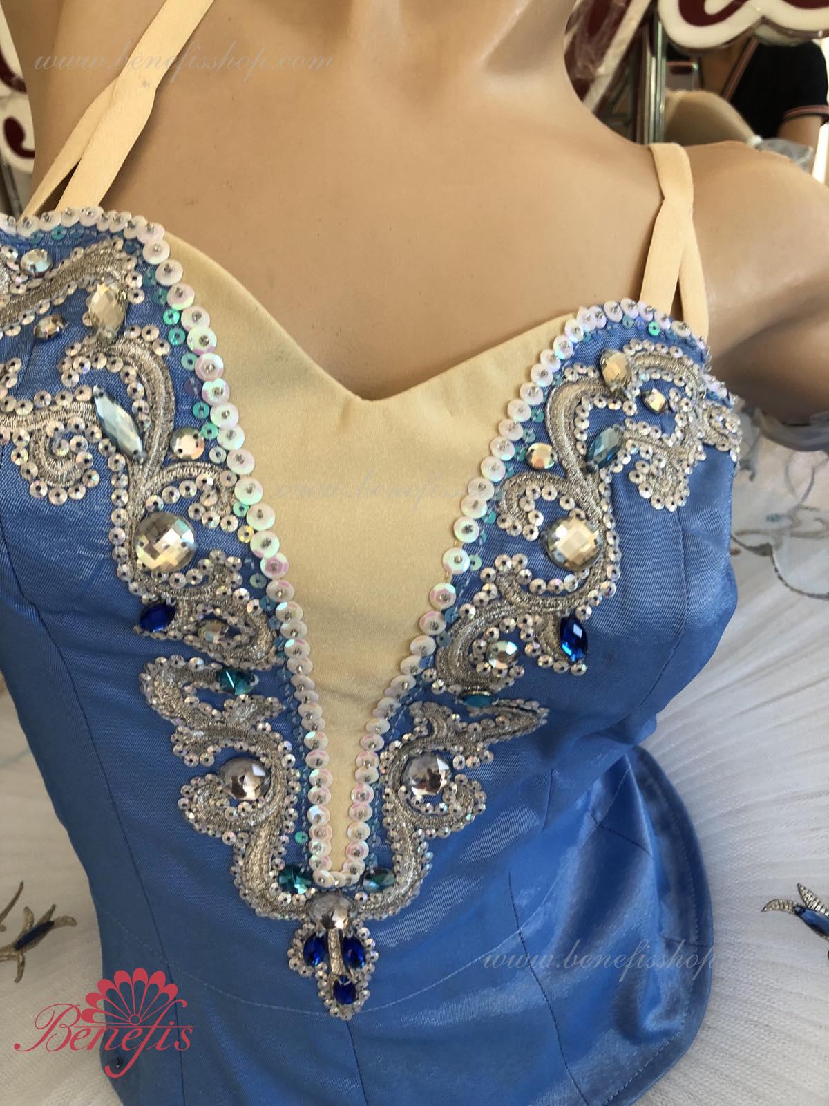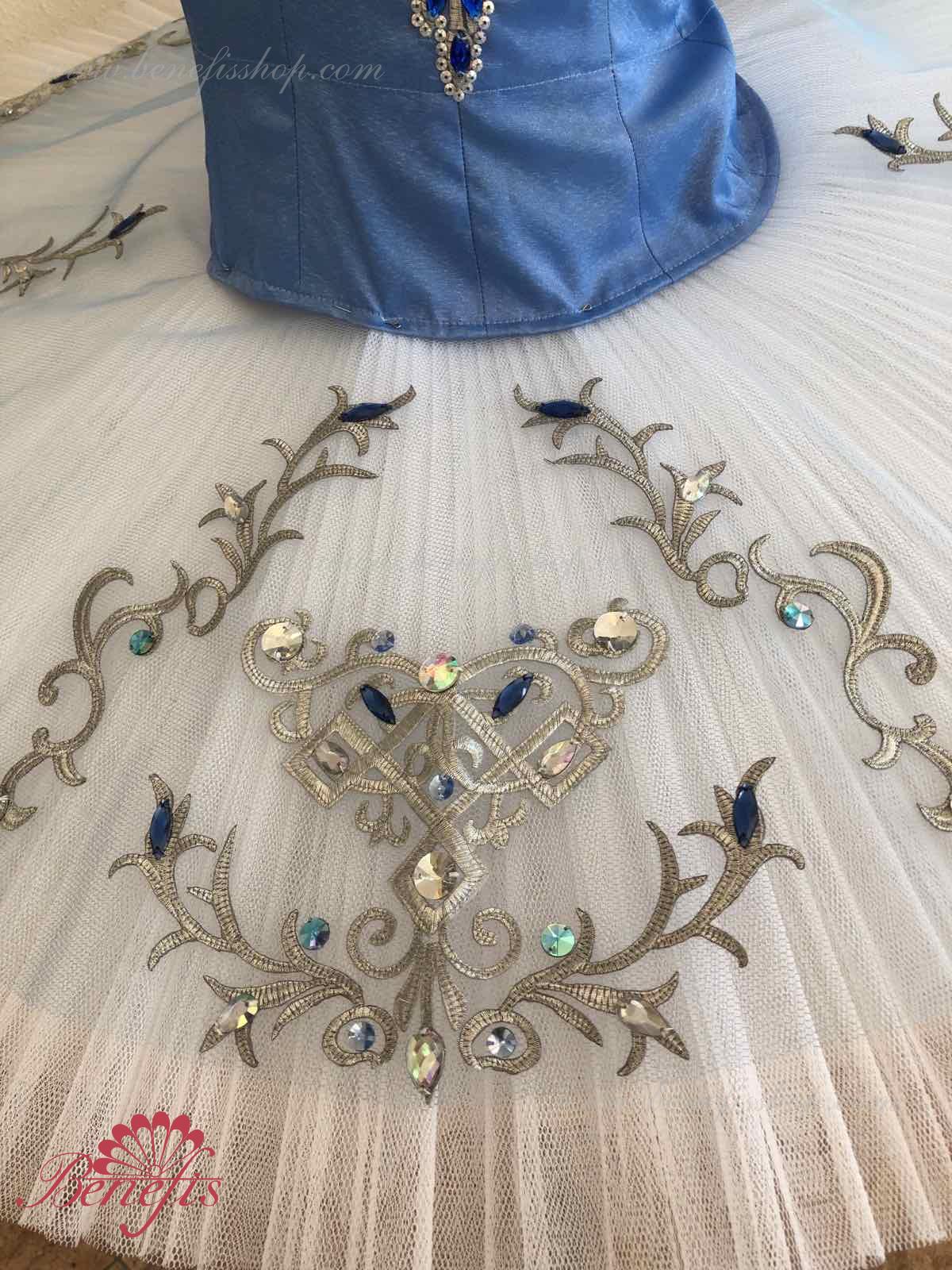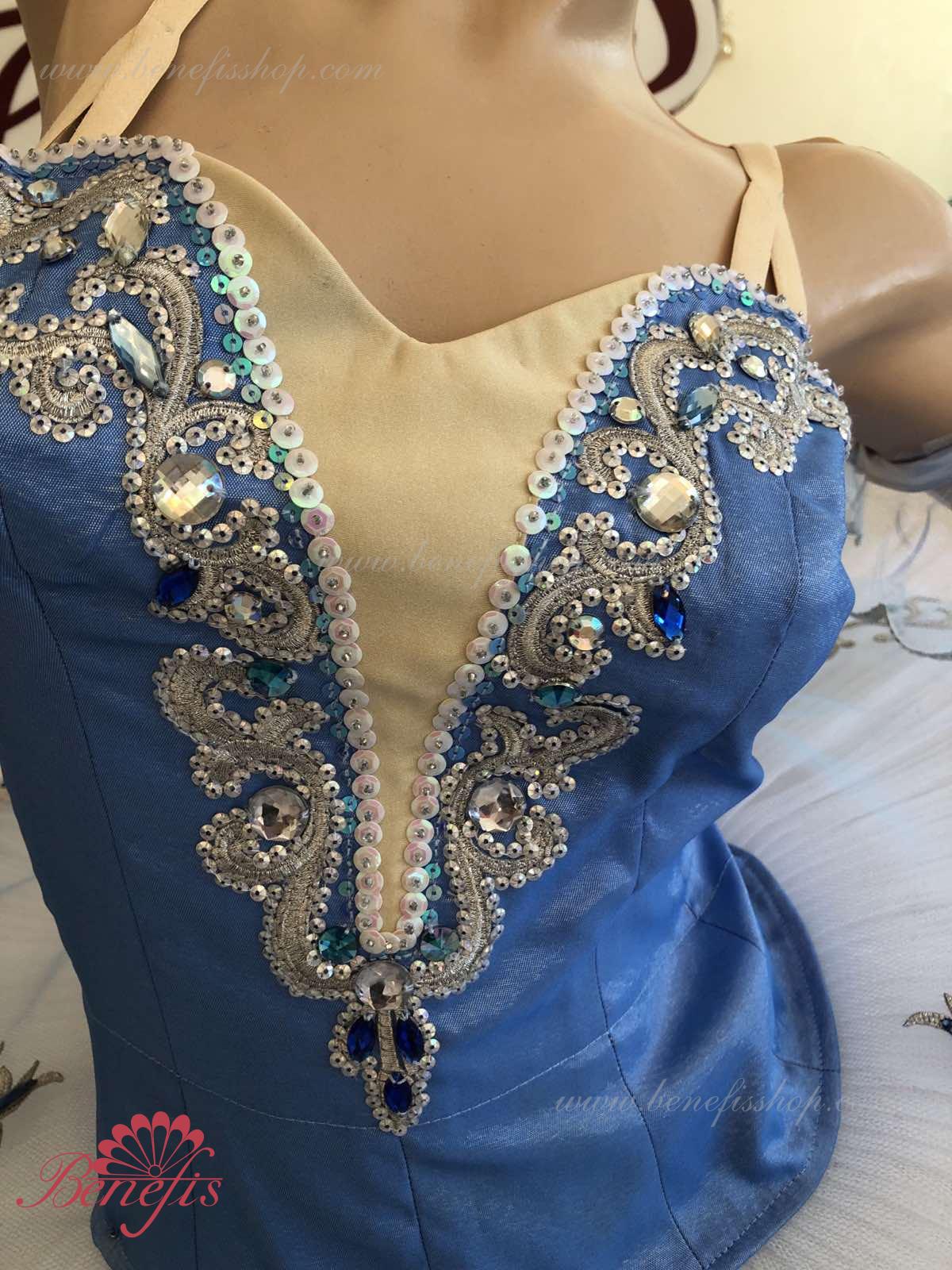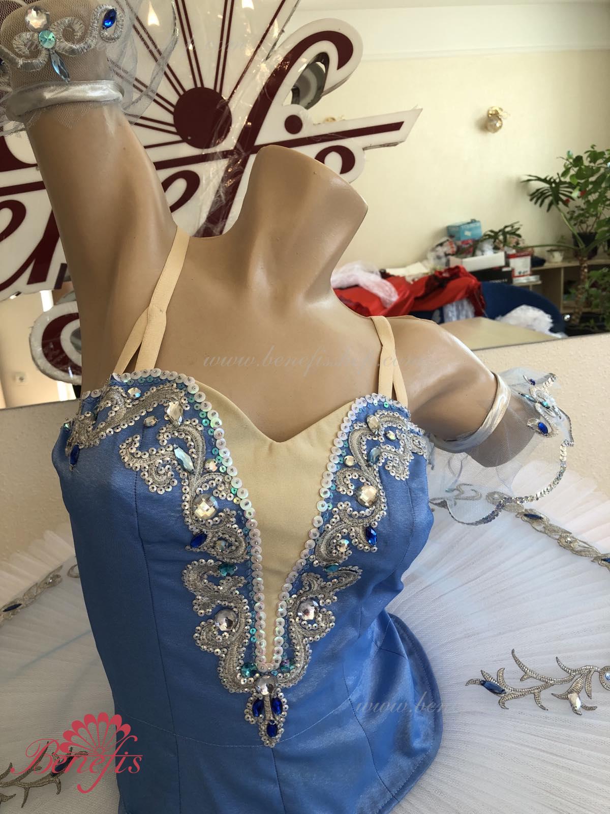 Костюм может быть использован в балете «Спящая красавица» для партии Голубой Птицы – принцессы Флорины, но он также может использоваться в любых иных партиях по усмотрению заказчика.