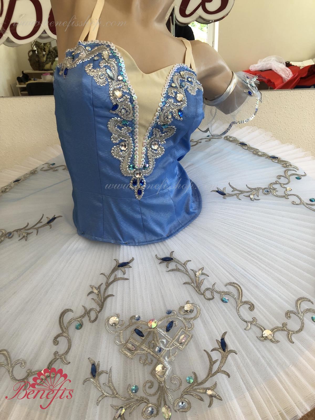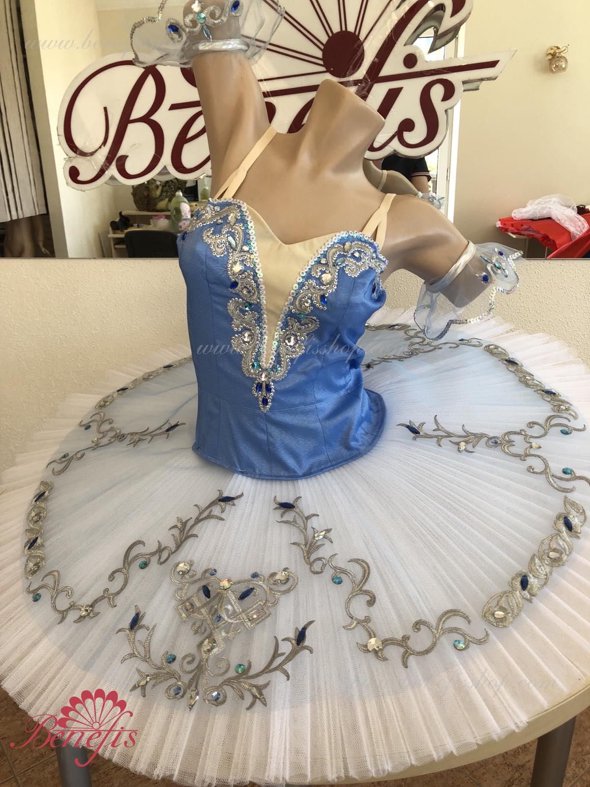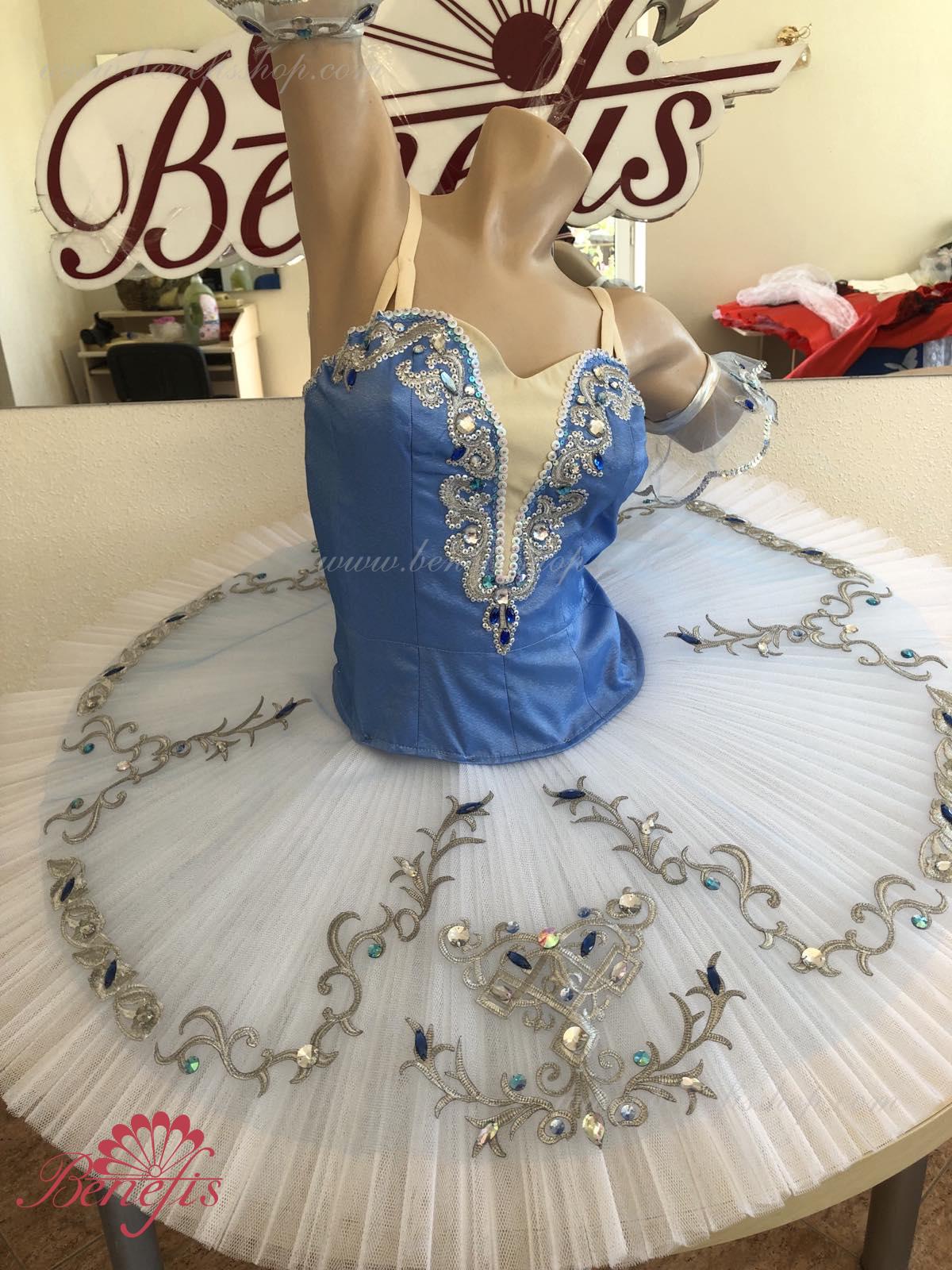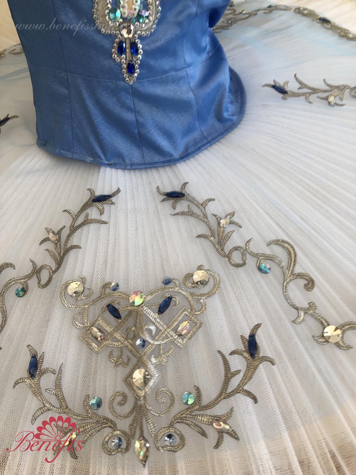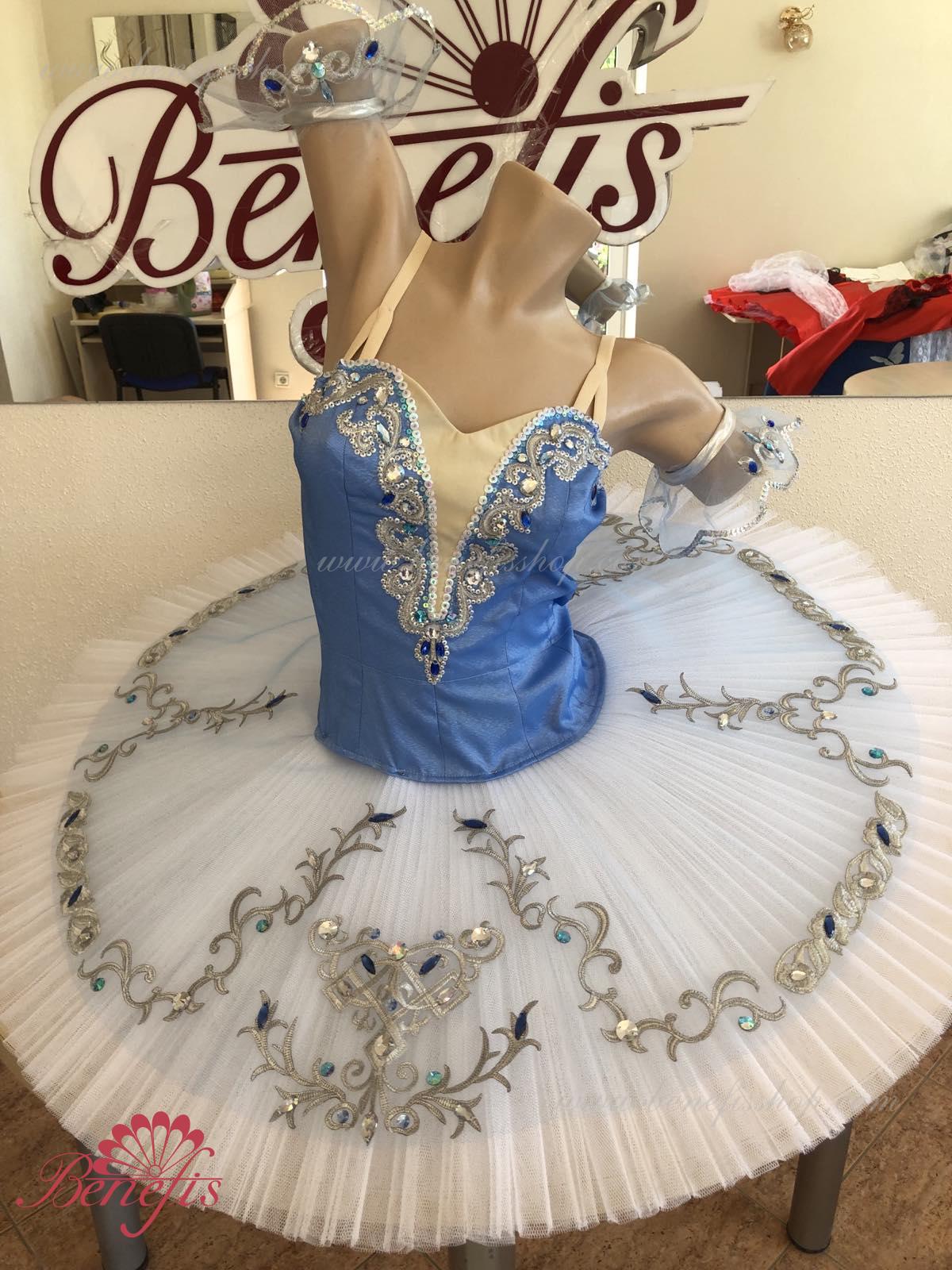 Костюм может быть использован в балете «Спящая красавица» для партии Голубой Птицы – принцессы Флорины, но он также может использоваться в любых иных партиях по усмотрению заказчика.